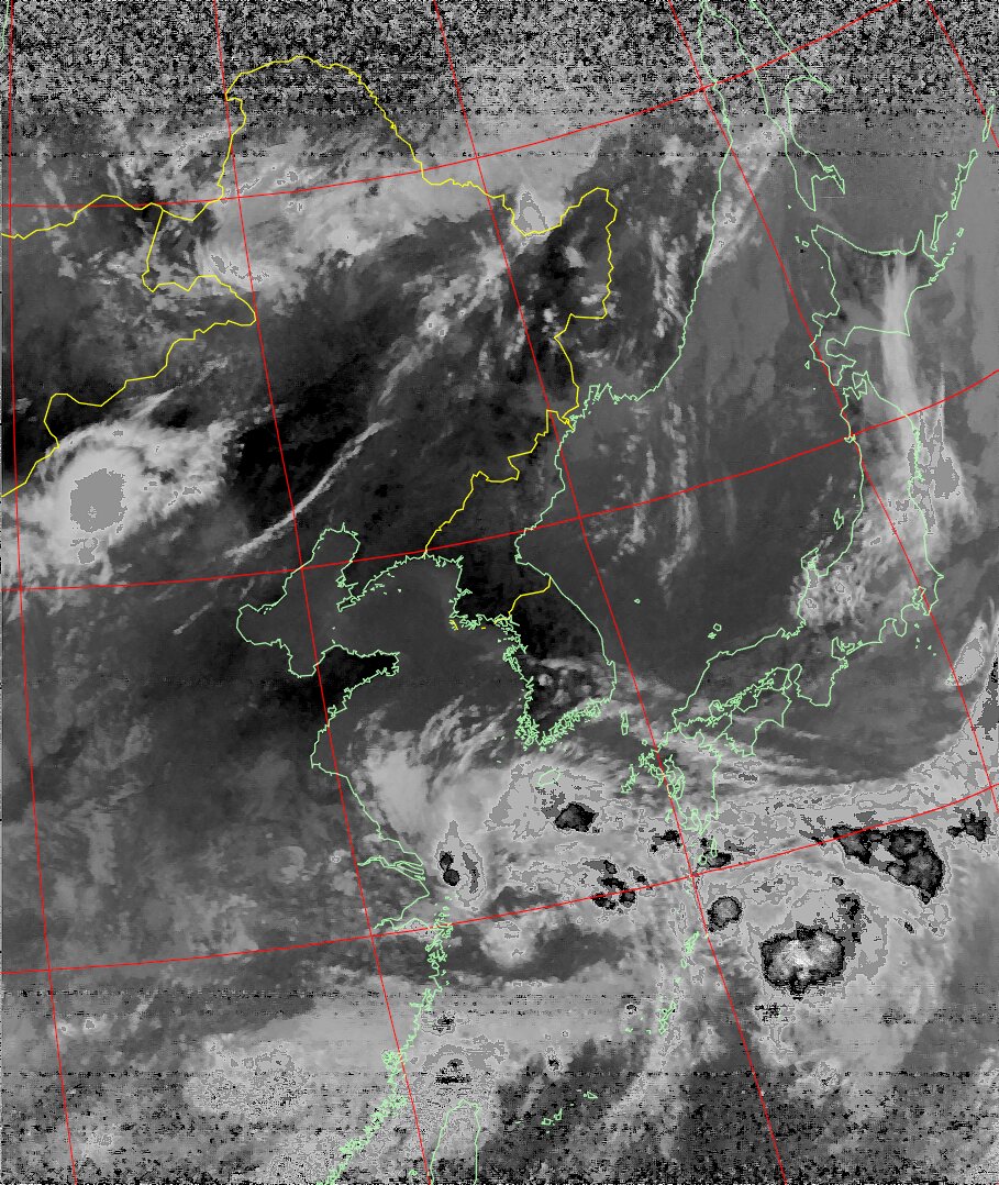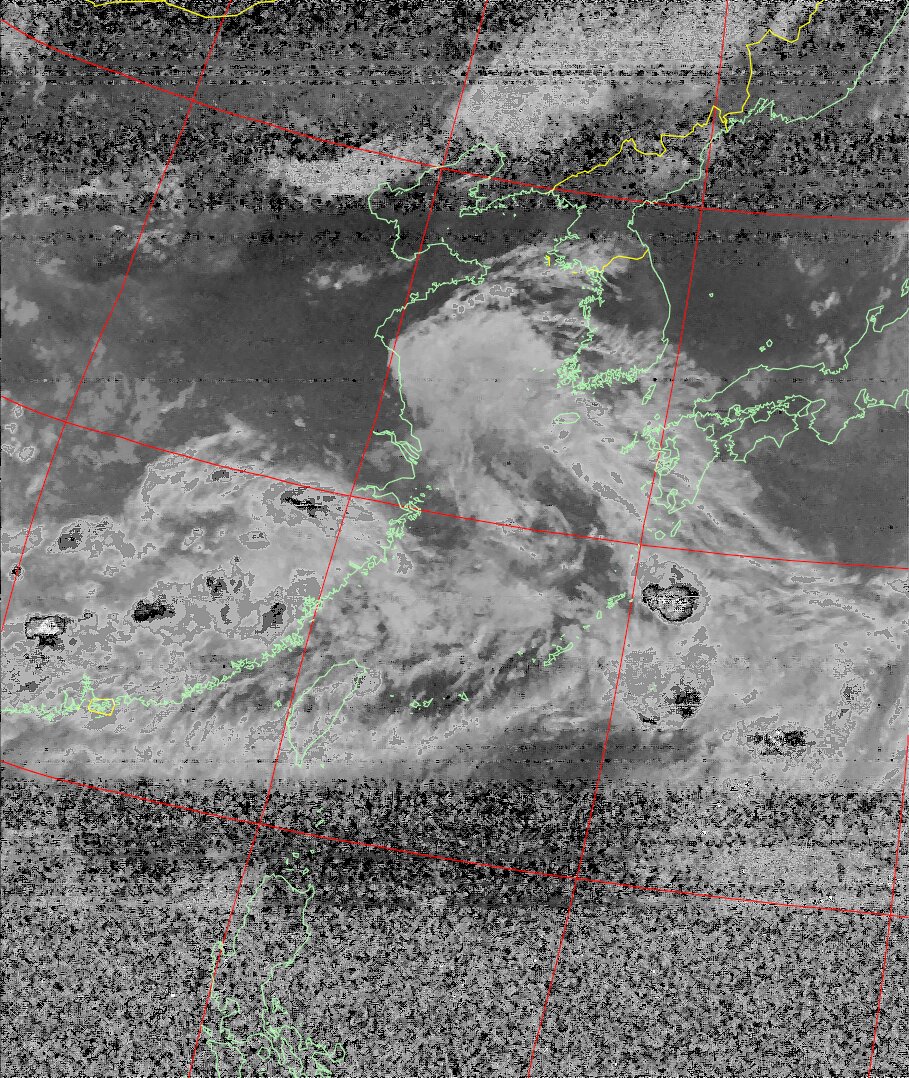 NOAA19 22:08:51~22:23:57 進行方向(南から北) 最大昇角(34°) 方角(西)