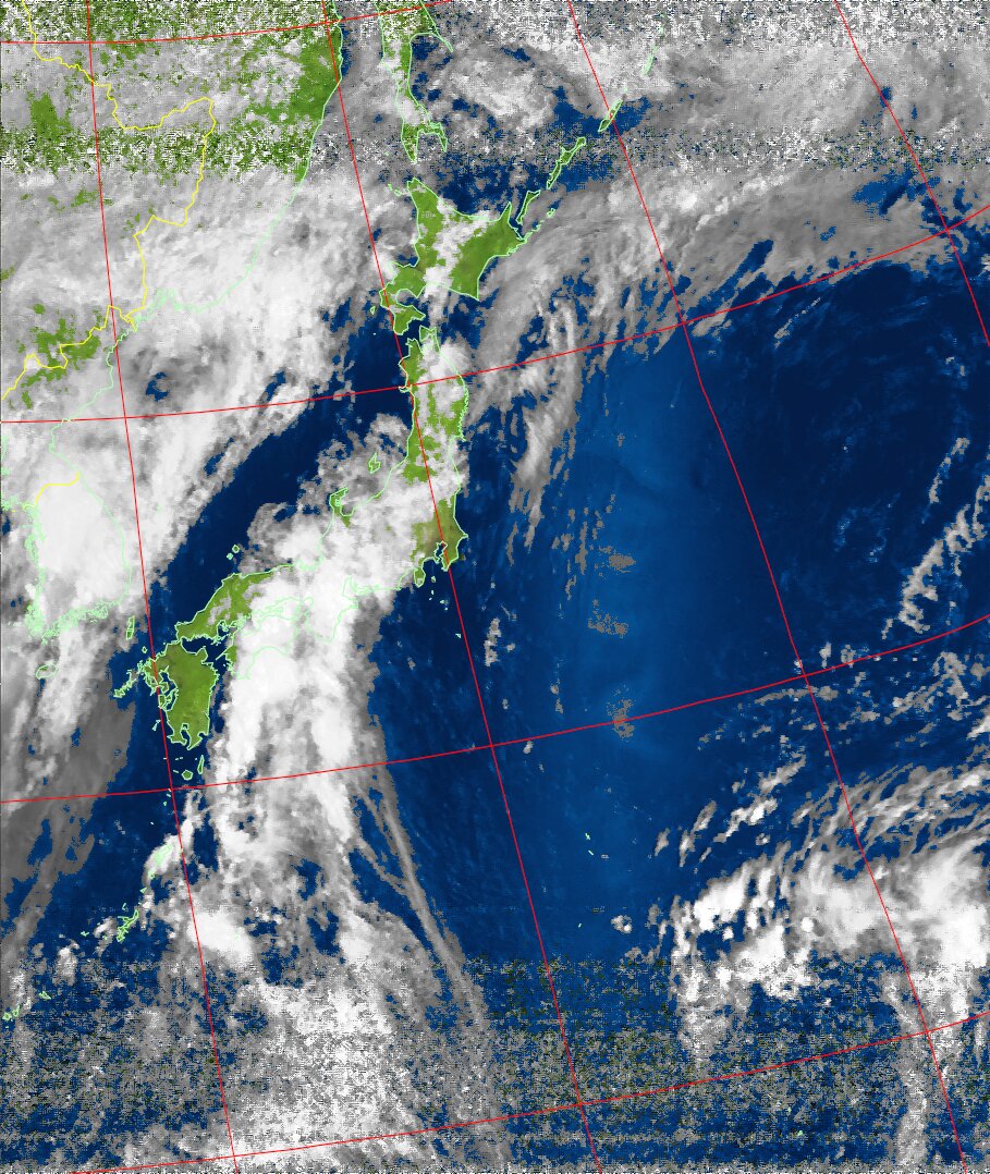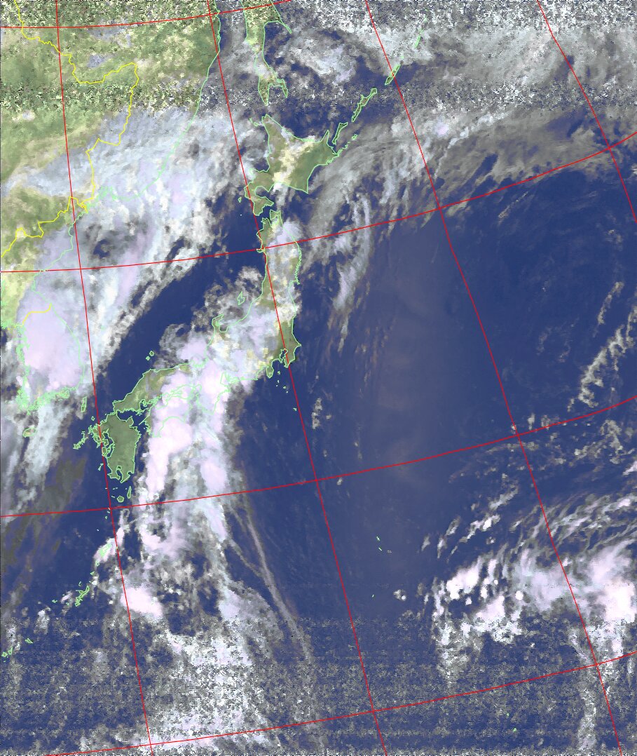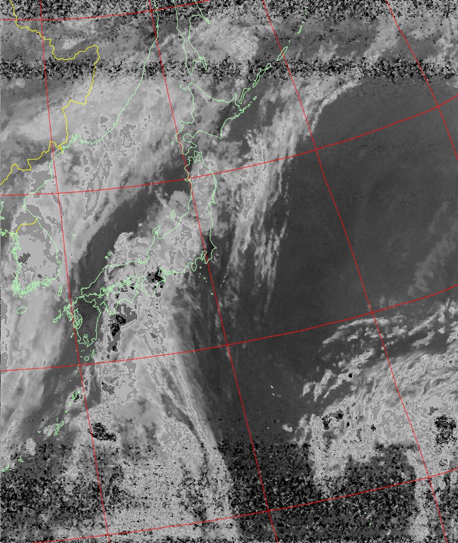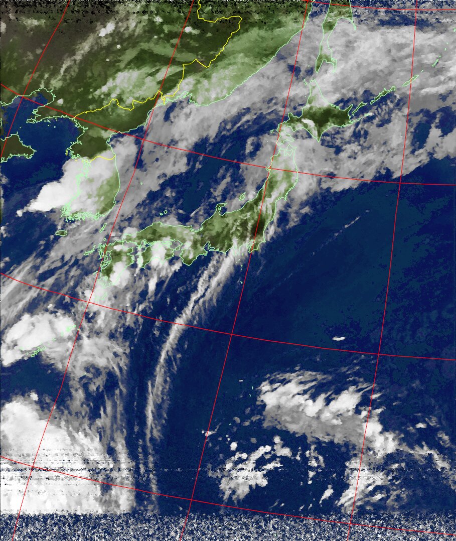 NOAA19 09:43:13~09:58:39 進行方向(北から南) 最大昇角(45°) 方角(東)