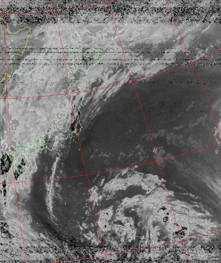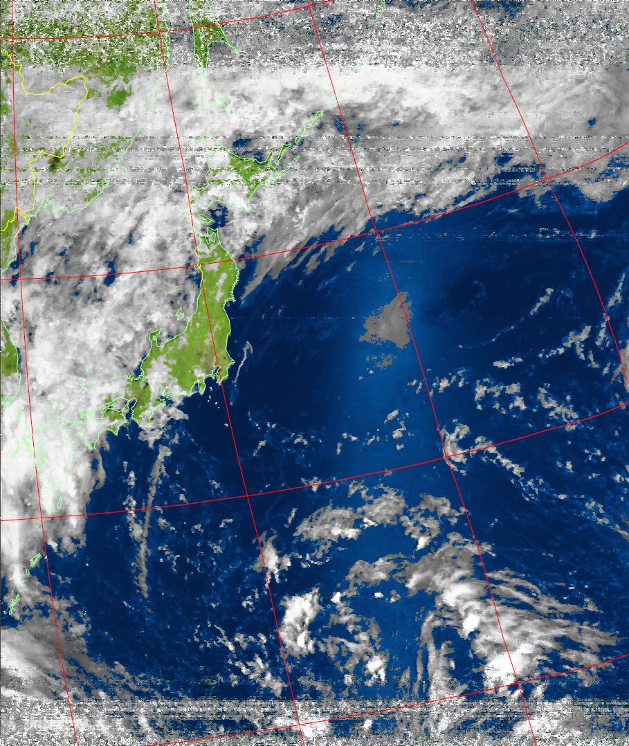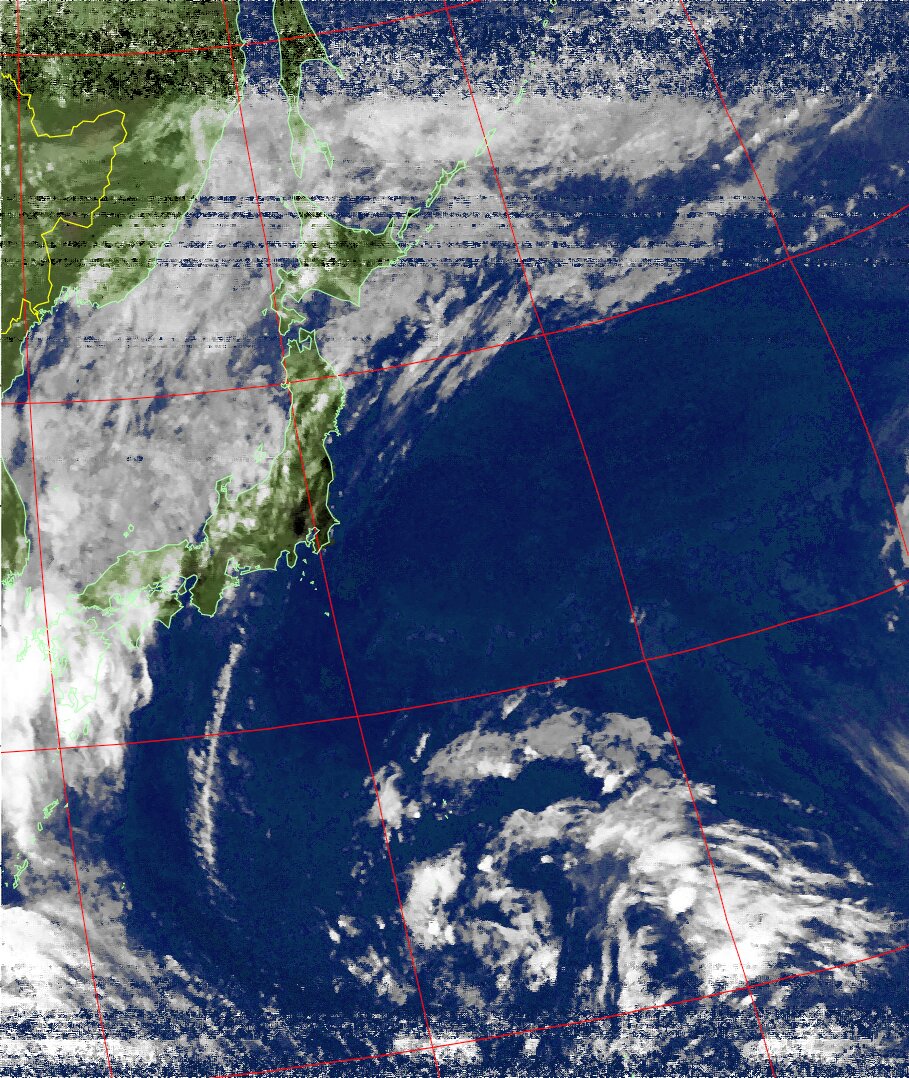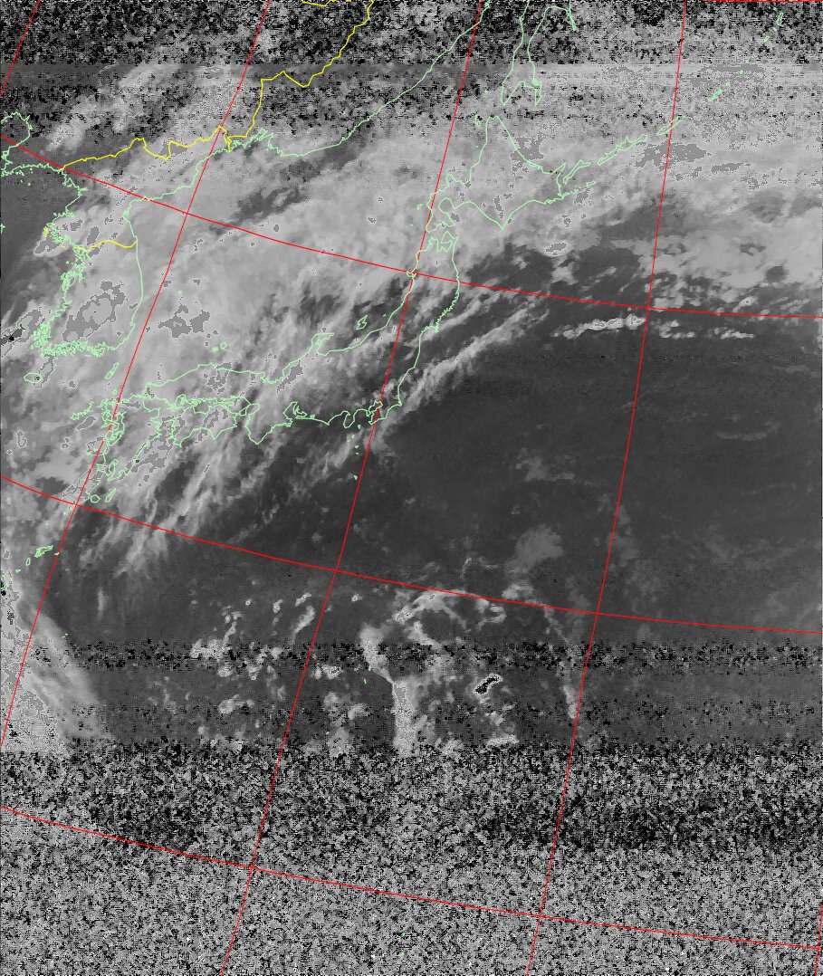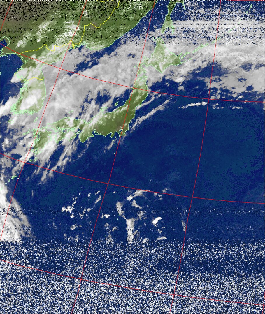 NOAA19 09:30:41~09:45:43 進行方向(北から南) 最大昇角(33°) 方角(東)