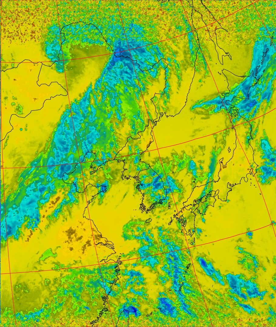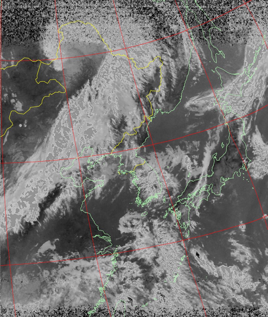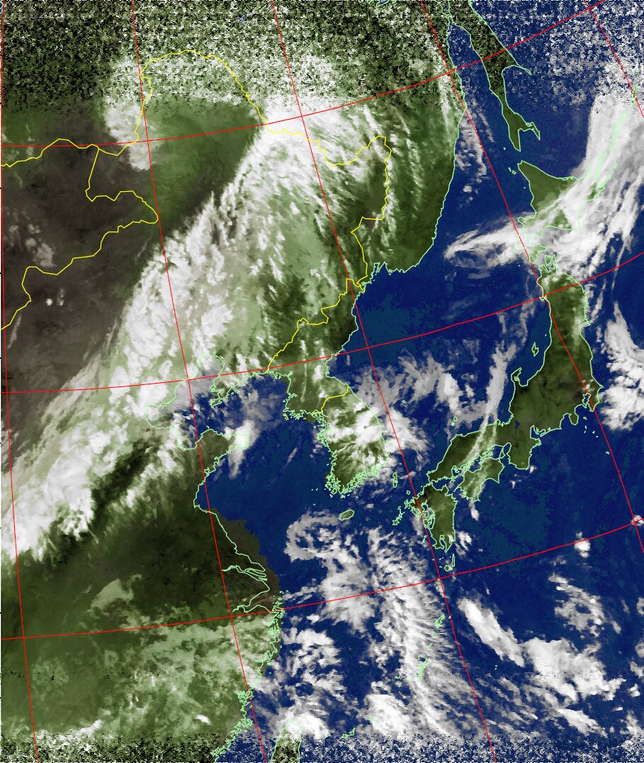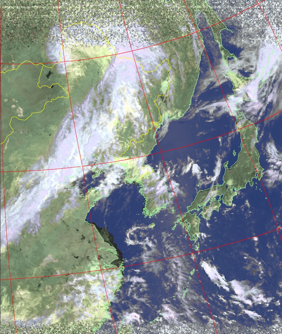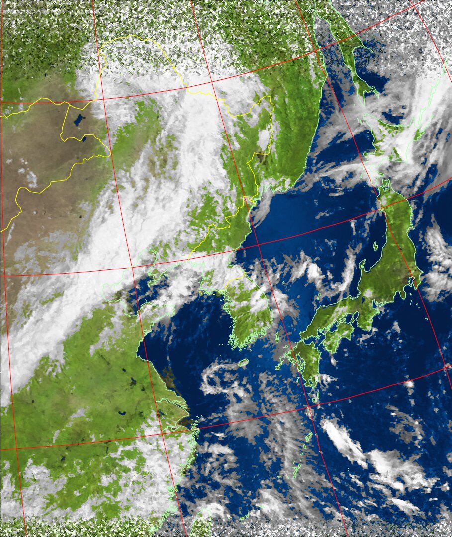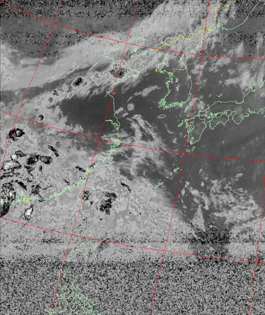NOAA19 10:45:48~11:01:00 進行方向(北から南) 最大昇角(46°) 方角(西)