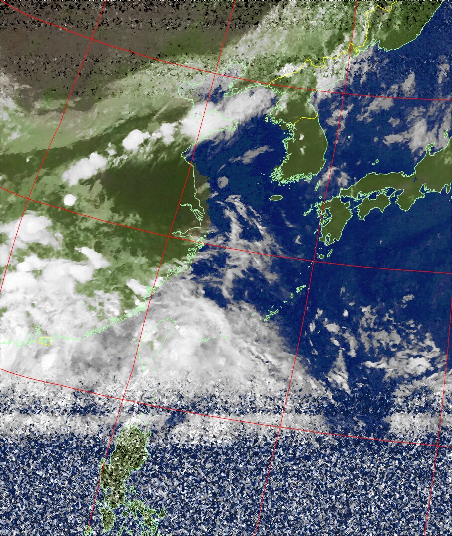 NOAA19 22:07:58~22:23:09 進行方向(南から北) 最大昇角(35°) 方角(西)