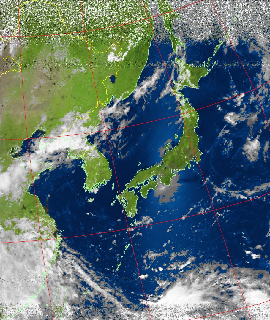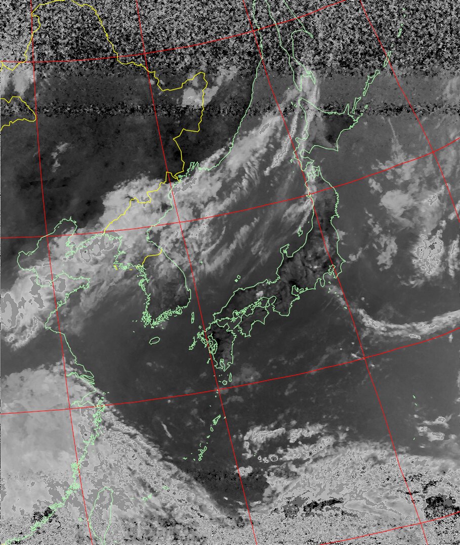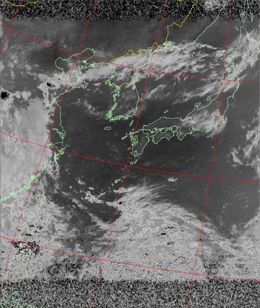 NOAA19 10:20:19~10:36:01 進行方向(北から南) 最大昇角(80°) 方角(西)