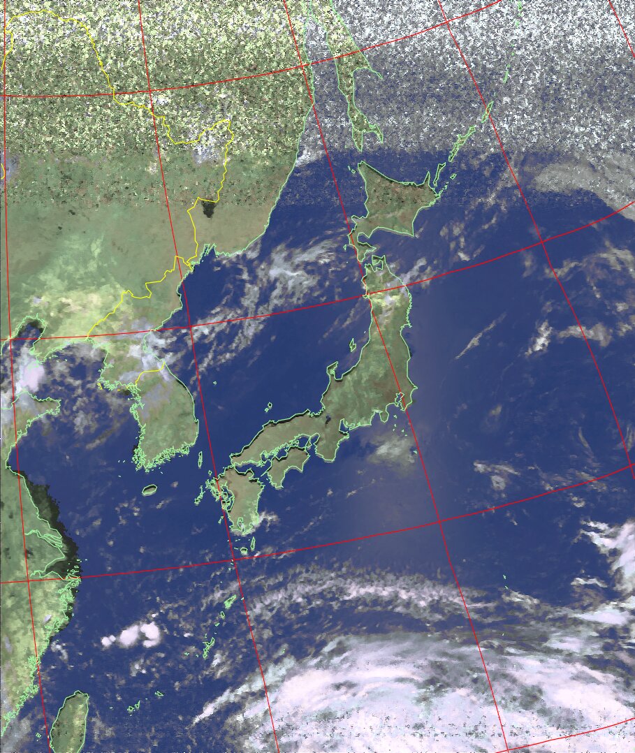 NOAA19 21:29:32~21:45:12 進行方向(南から北) 最大昇角(84°) 方角(西)