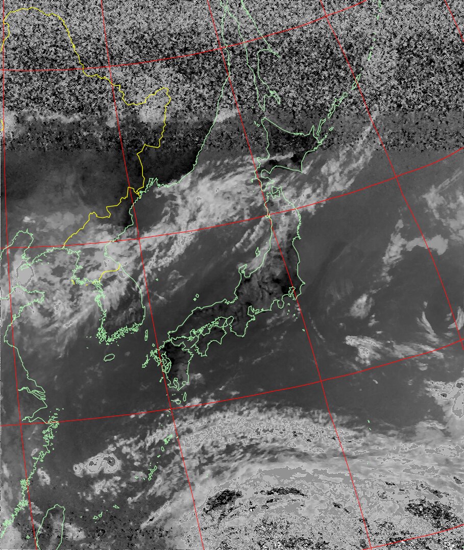 NOAA19 10:07:38~10:23:21 進行方向(北から南) 最大昇角(77°) 方角(東)