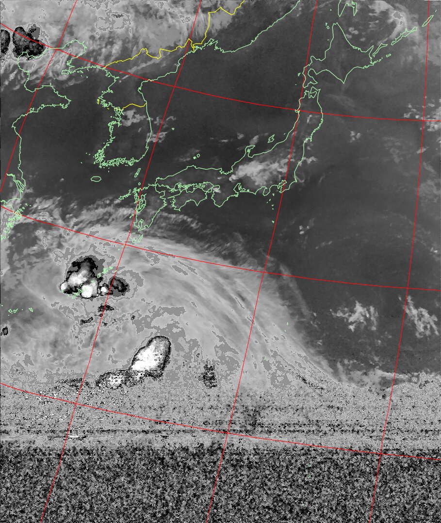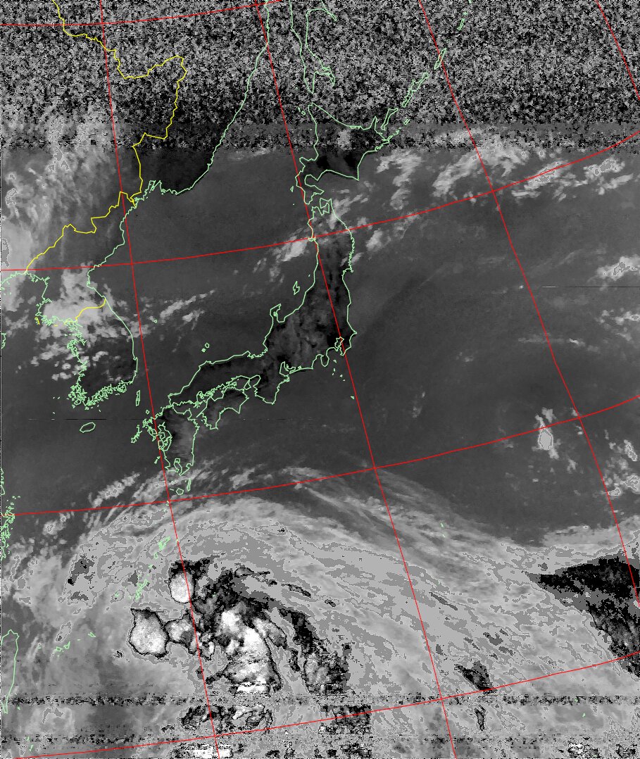 NOAA19 21:16:53~21:32:39 進行方向(南から北) 最大昇角(72°) 方角(東)