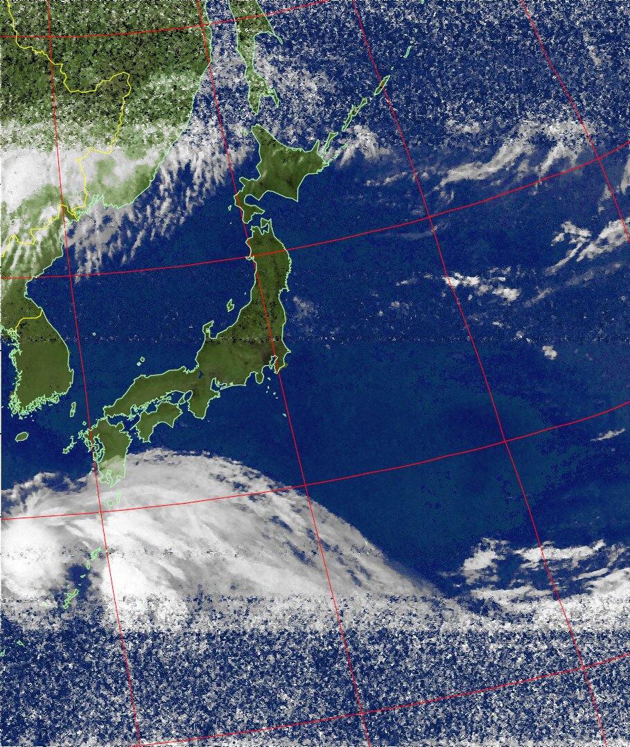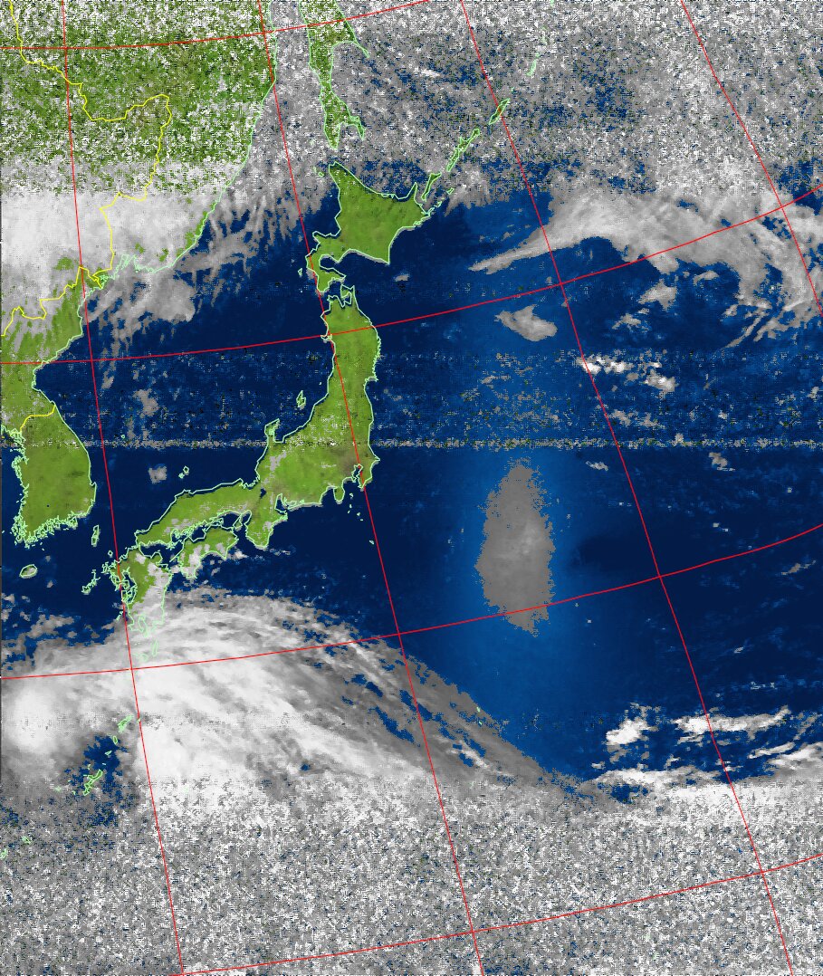 NOAA19 21:04:19~21:19:55 進行方向(南から北) 最大昇角(56°) 方角(東)