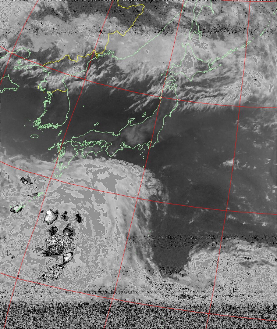 NOAA19 09:42:24~09:57:44 進行方向(北から南) 最大昇角(43°) 方角(東)