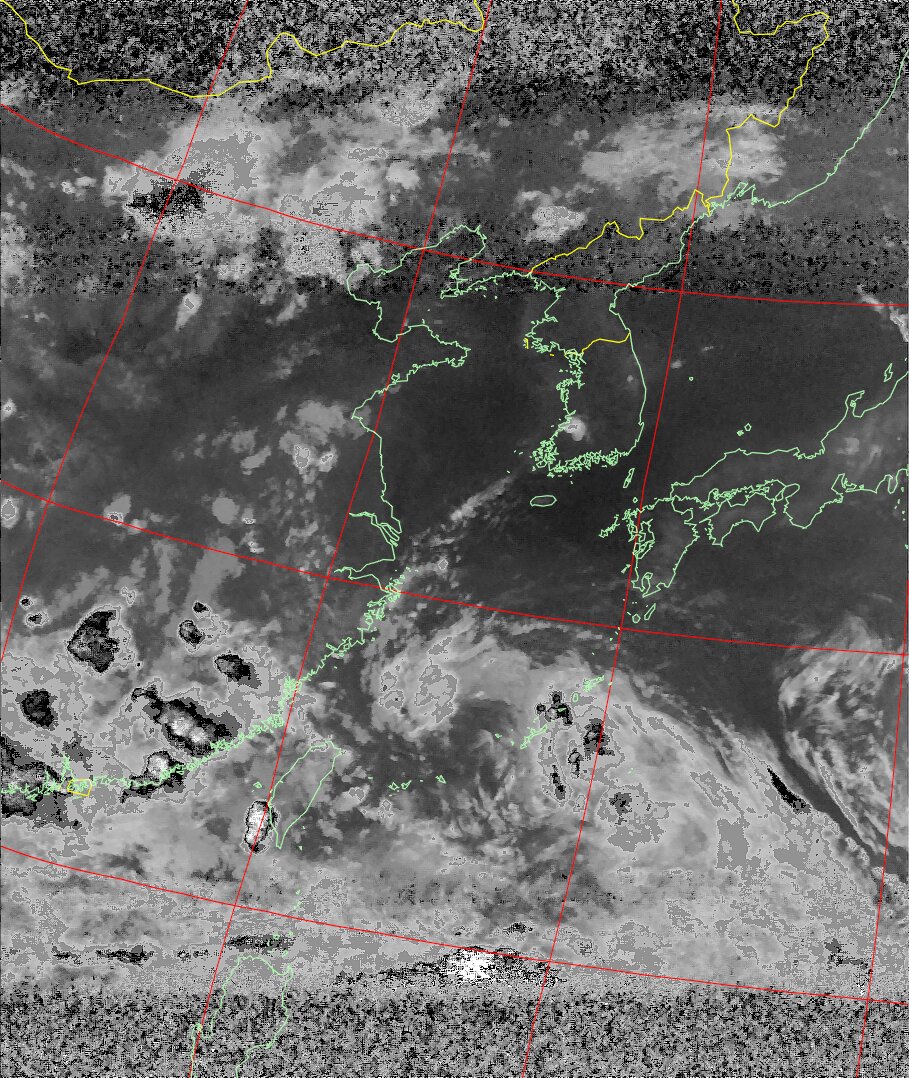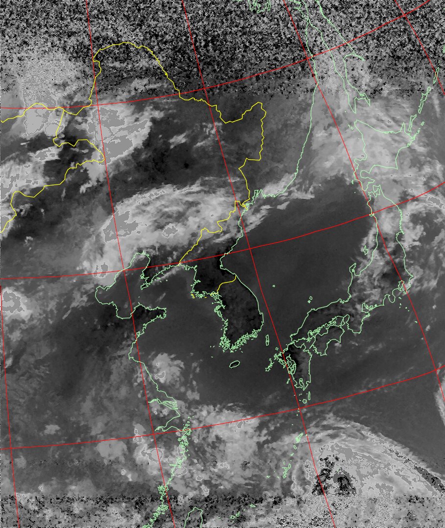 NOAA19 22:07:04~22:22:19 進行方向(南から北) 最大昇角(37°) 方角(西)