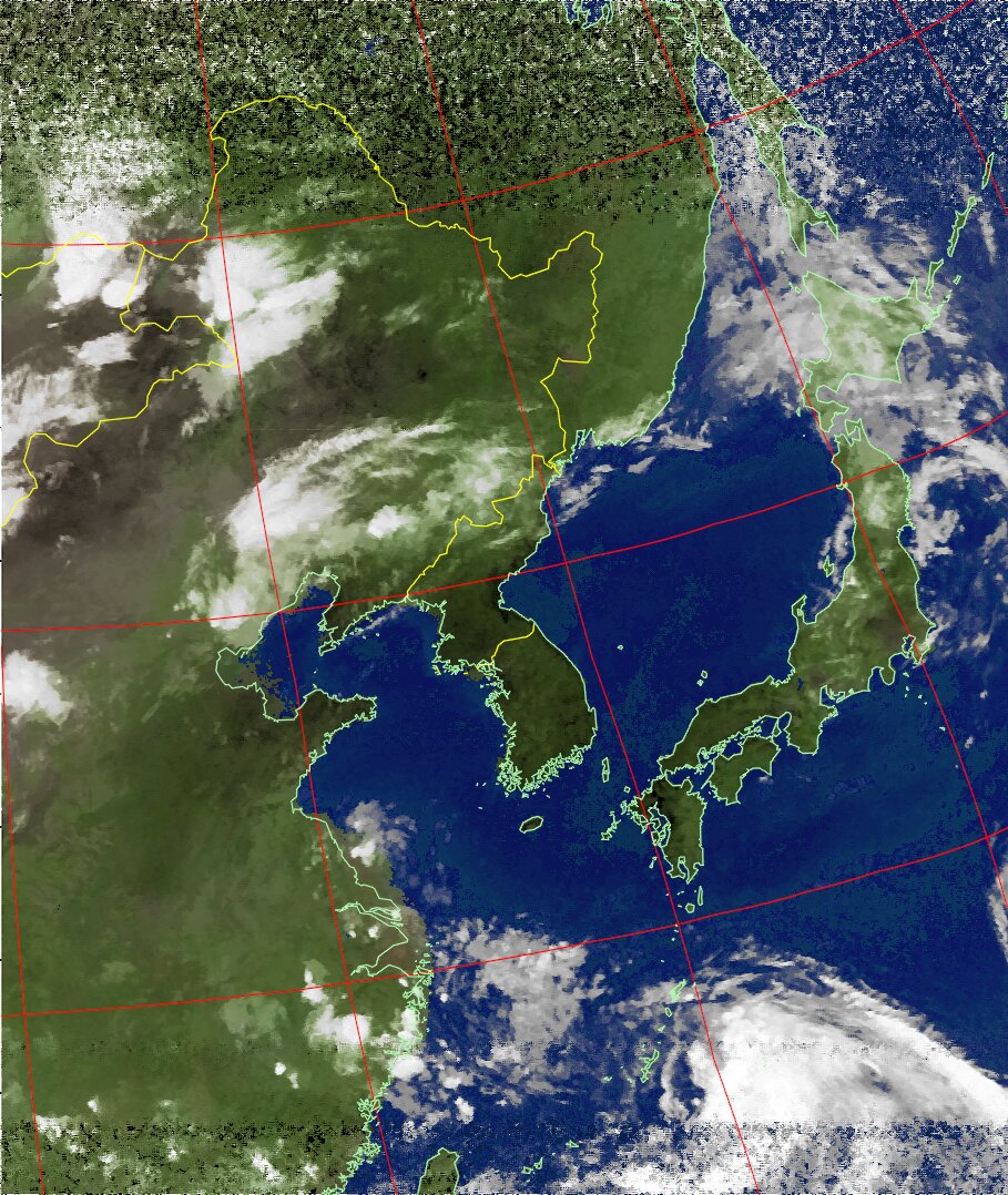 NOAA19 10:44:57~11:00:14 進行方向(北から南) 最大昇角(47°) 方角(西)