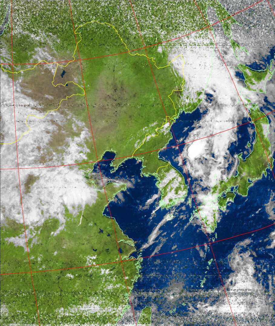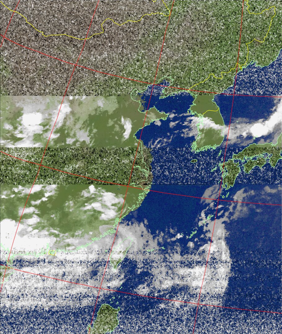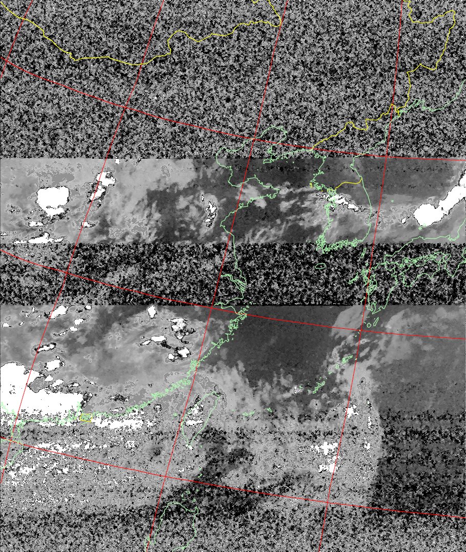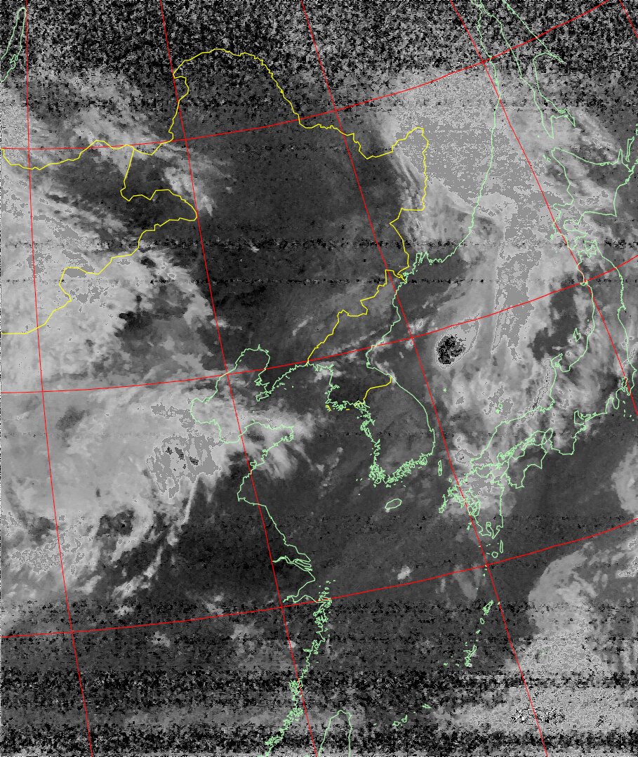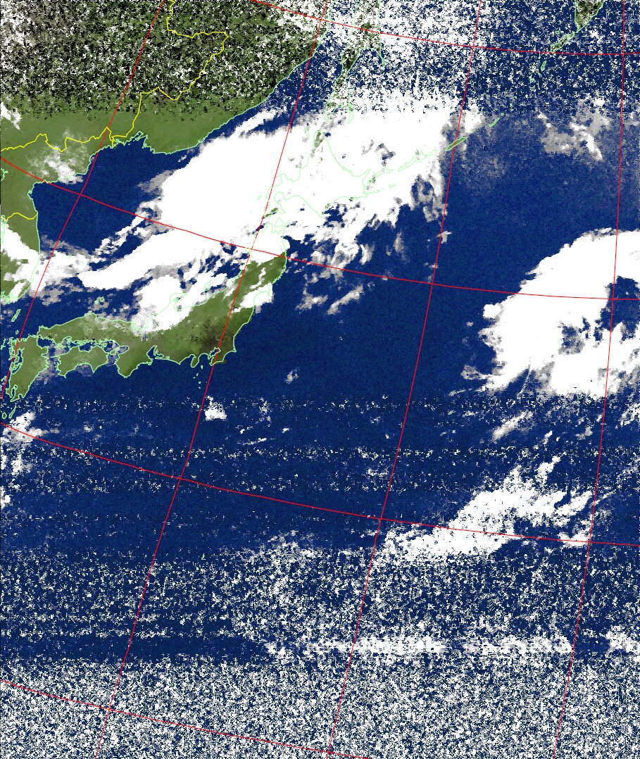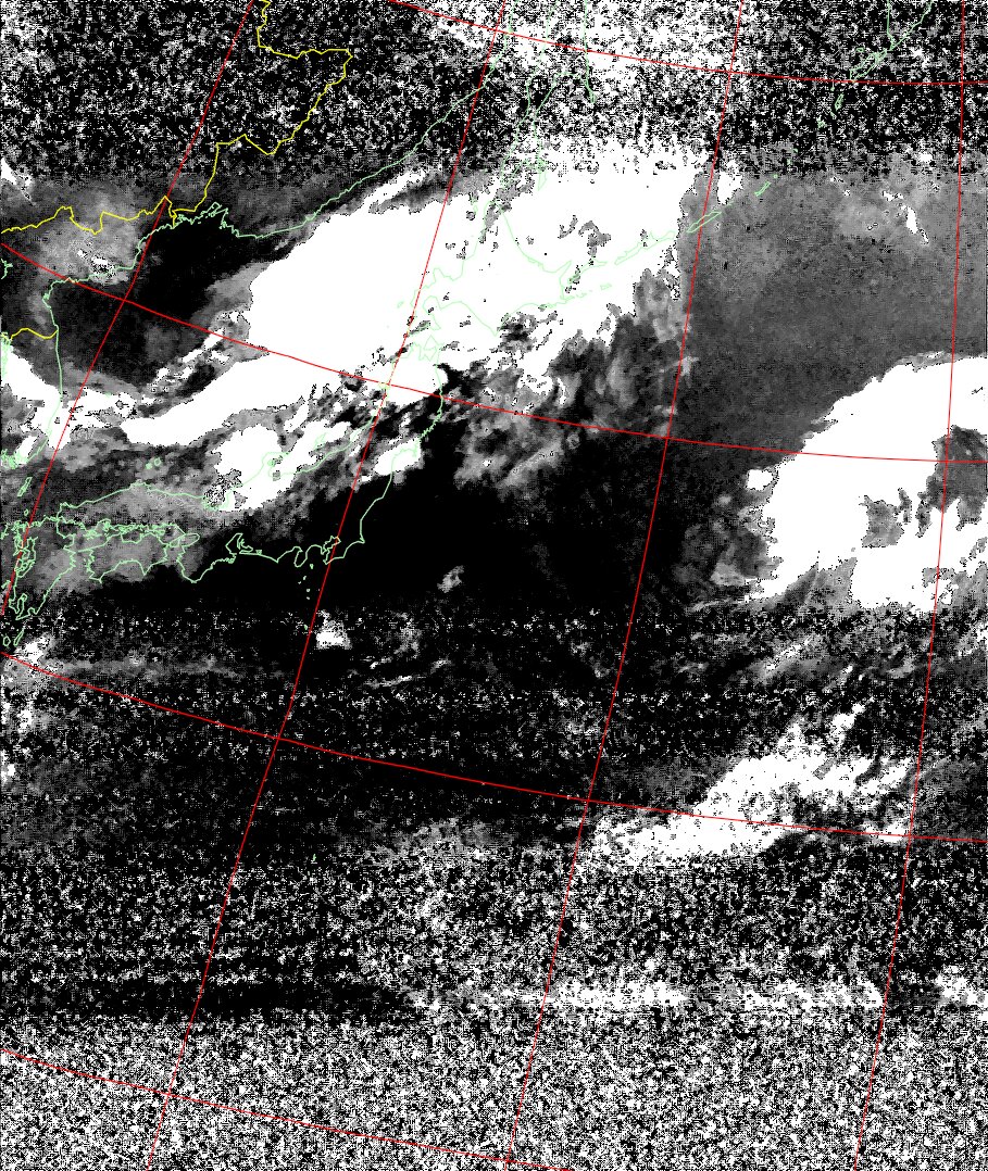 NOAA19 20:38:38~20:53:25 進行方向(南から北) 最大昇角(30°) 方角(東)