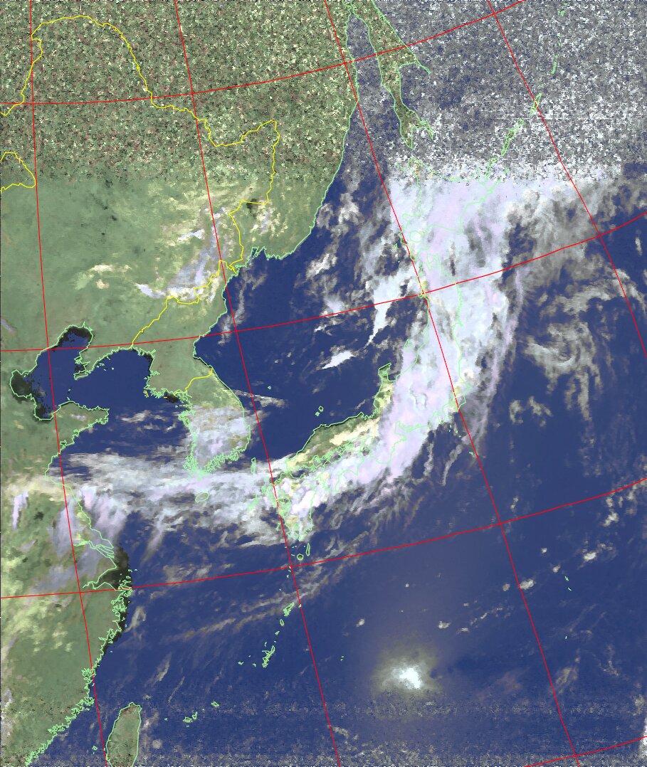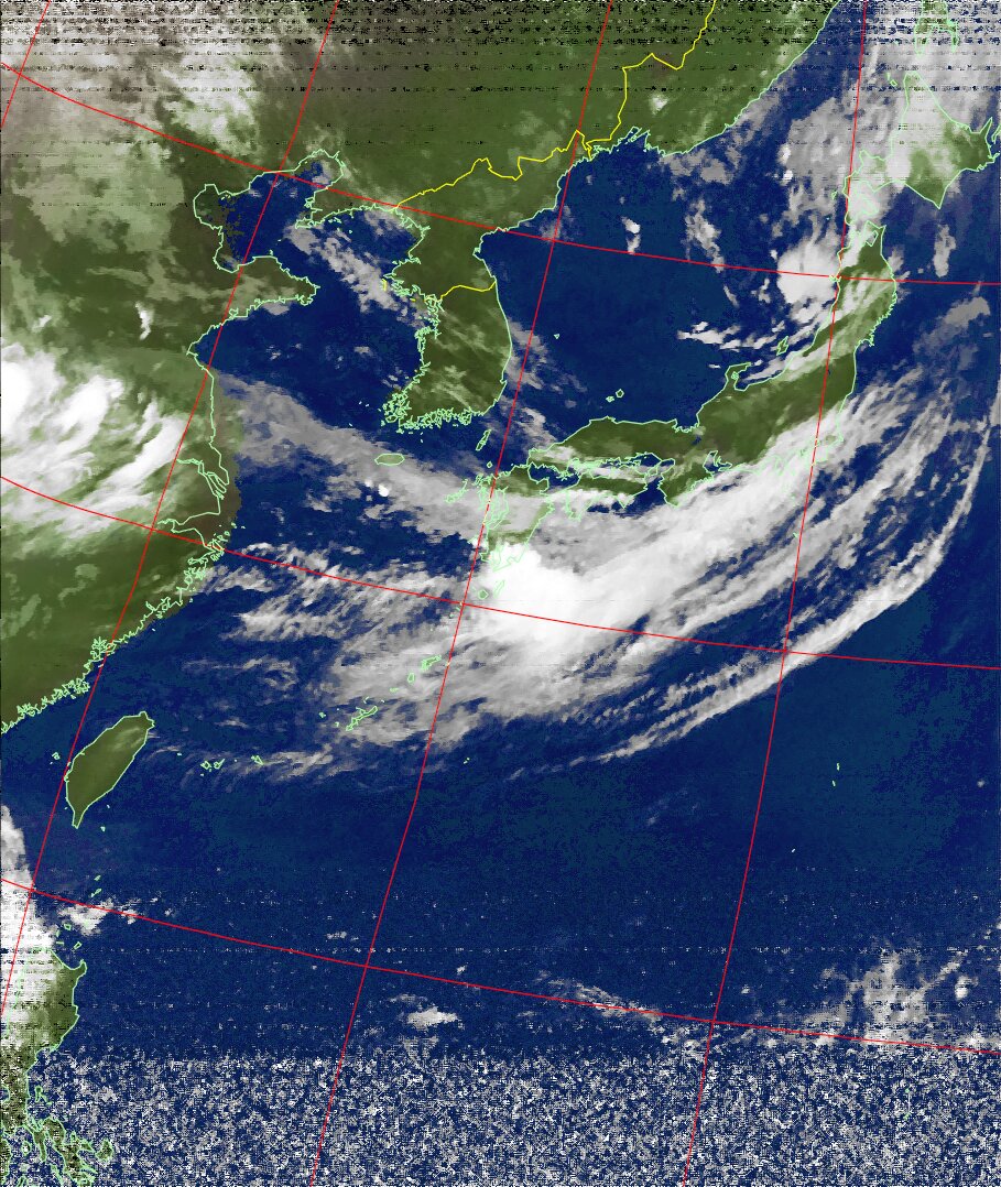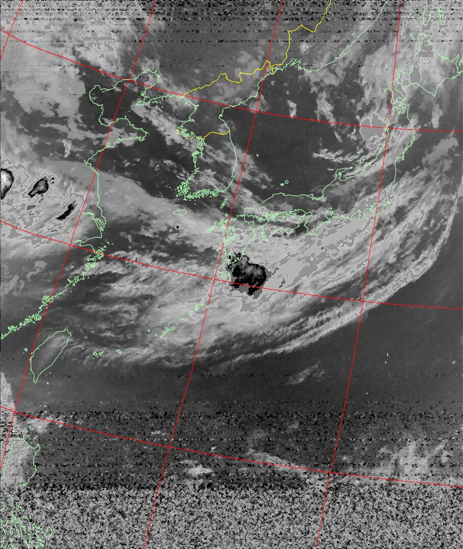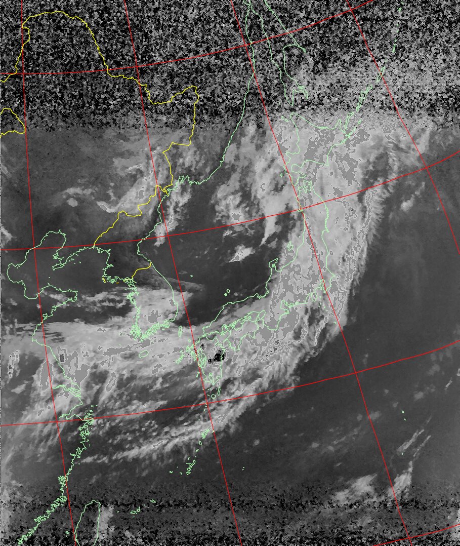 NOAA19 10:18:35~10:34:13 進行方向(北から南) 最大昇角(86°) 方角(西)