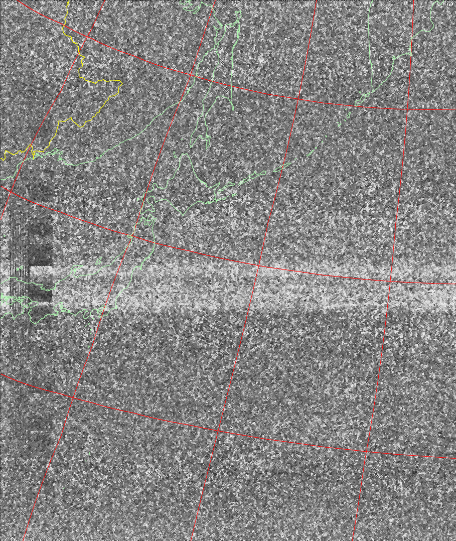 | NOAA19 08:07:27~08:22:58 進行方向(北から南) 最大昇角(57°) 方角(東) |