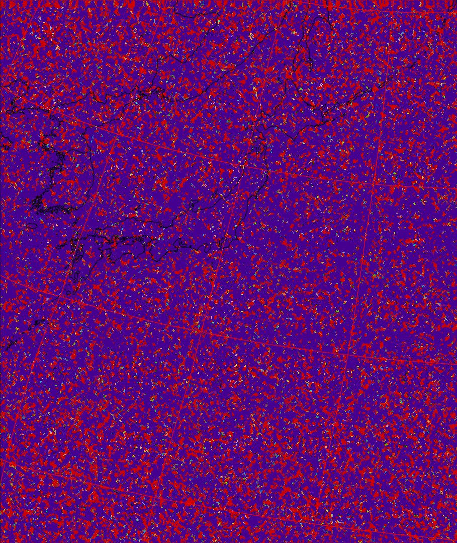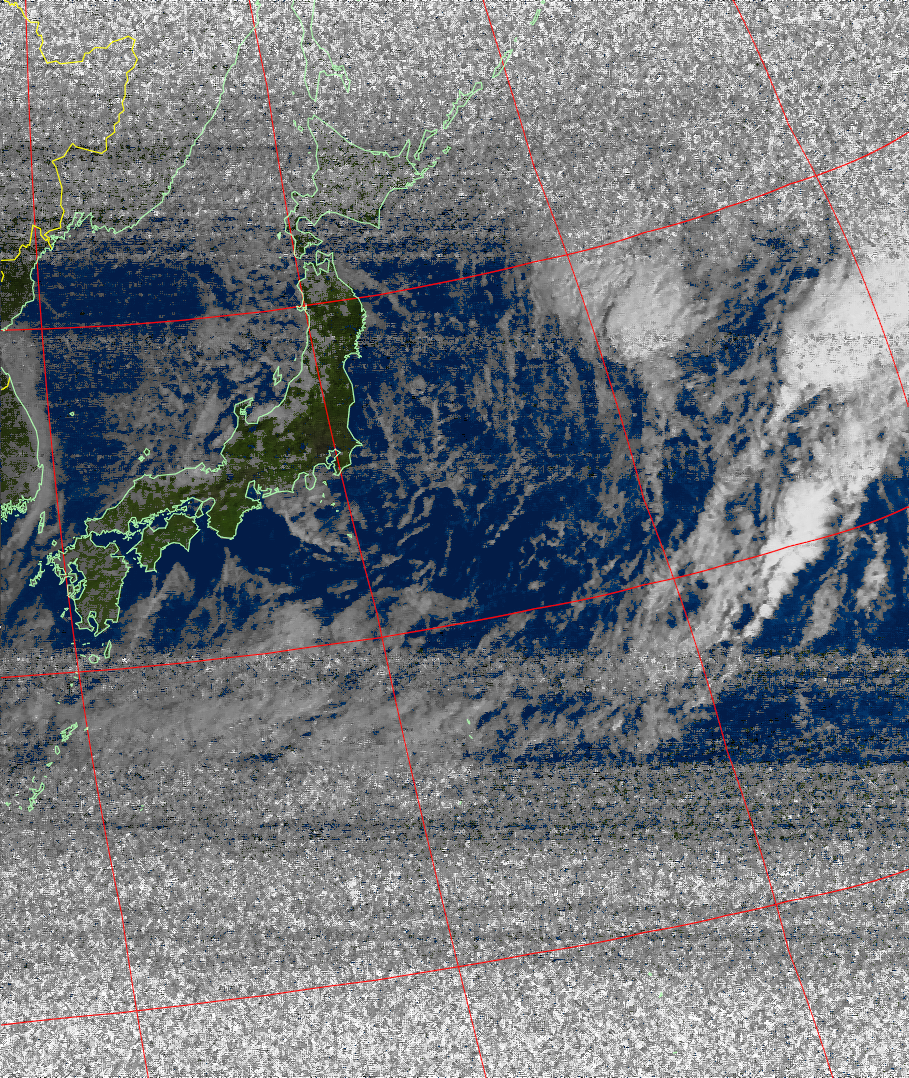| NOAA18 22:10:28~22:26:07 進行方向(南から北) 最大昇角(63°) 方角(西) |