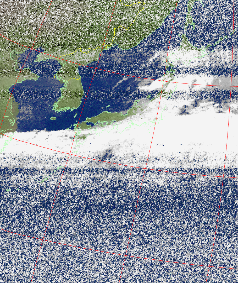 | NOAA19 09:05:47~09:20:52 進行方向(北から南) 最大昇角(41°) 方角(西) |