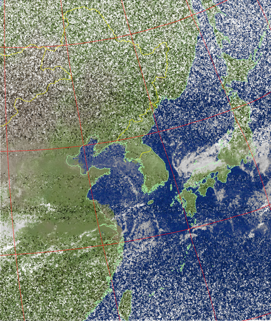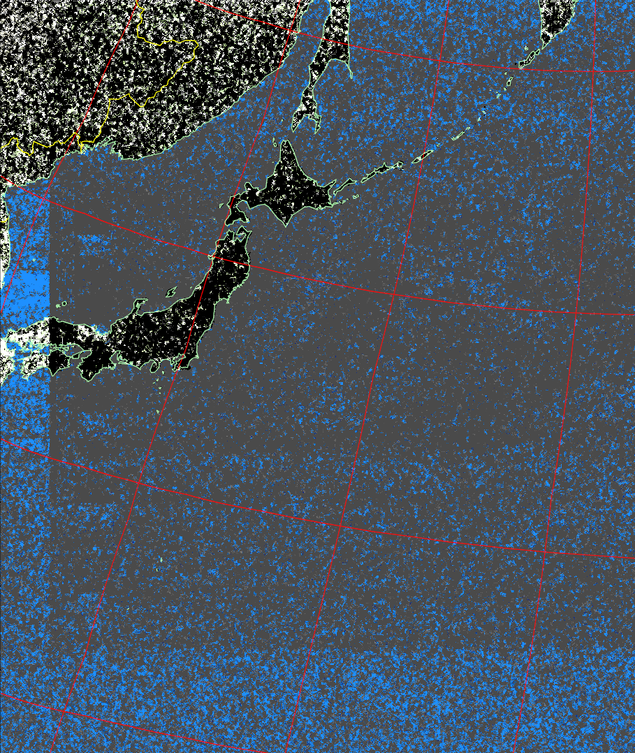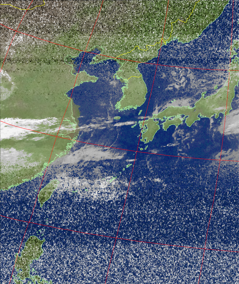 | NOAA19 08:17:57~08:33:31 進行方向(北から南) 最大昇角(67°) 方角(東) |