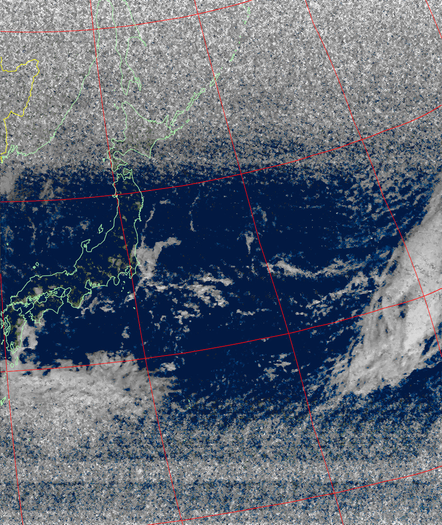 | NOAA15 08:38:10~08:52:27 進行方向(北から南) 最大昇角(31°) 方角(西) |