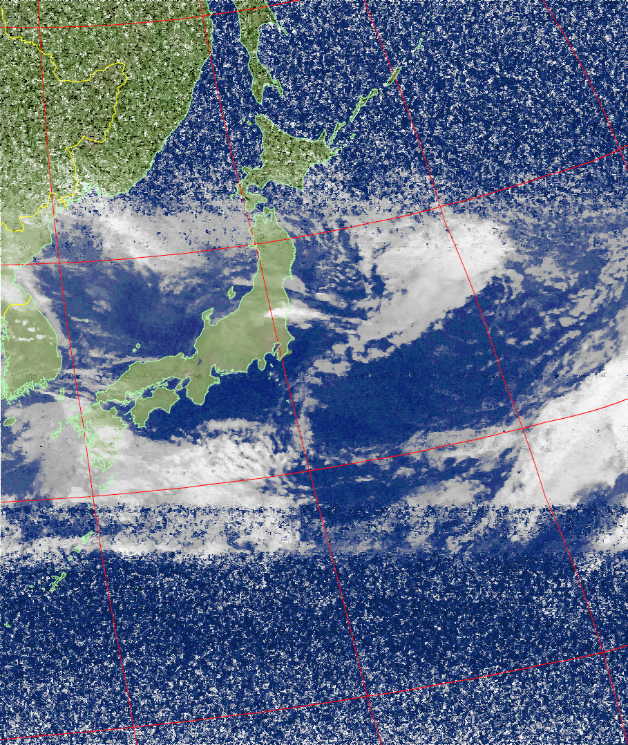 | NOAA18 10:07:43~10:23:03 進行方向(北から南) 最大昇角(40°) 方角(東) |