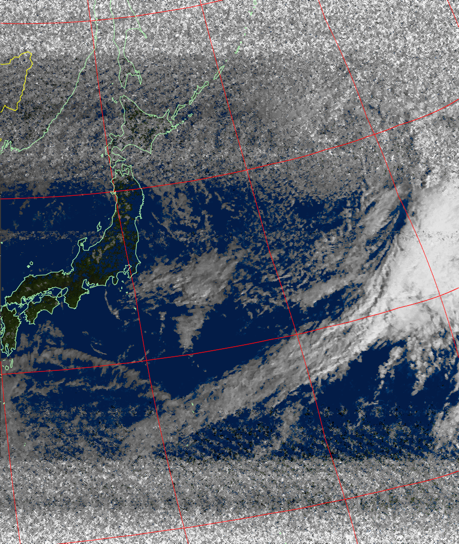 | NOAA19 09:21:28~09:36:09 進行方向(北から南) 最大昇角(31°) 方角(西) |
