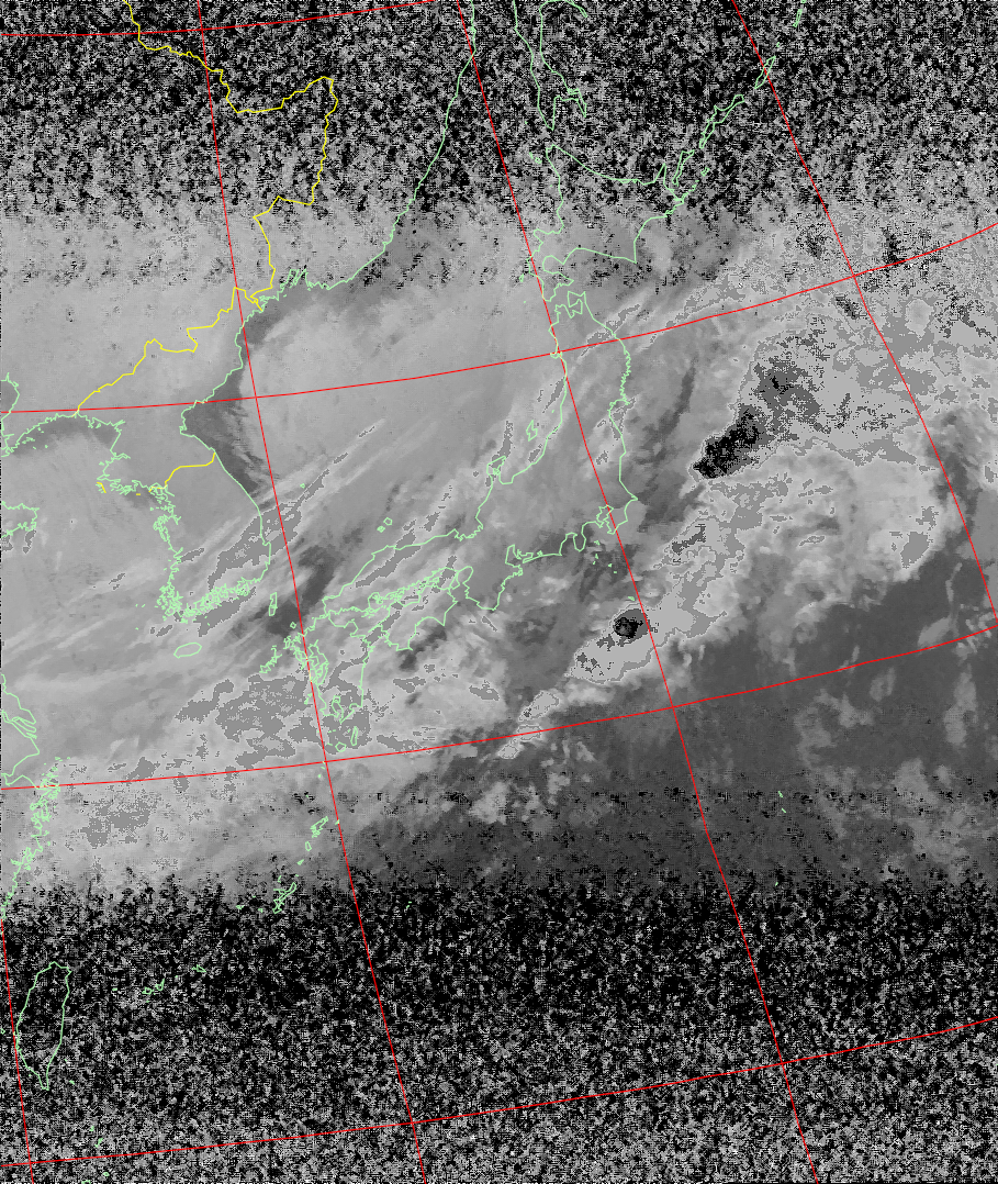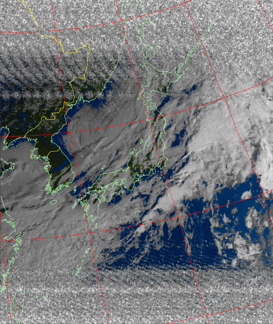 | NOAA19 08:21:30~08:37:08 進行方向(北から南) 最大昇角(68°) 方角(東) |