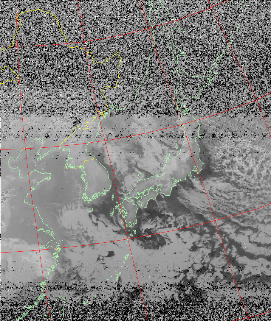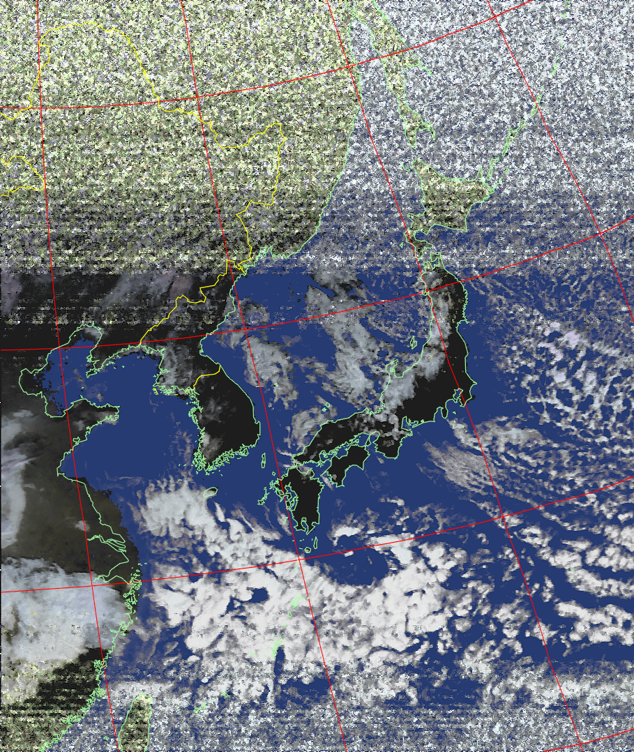 | NOAA19 08:01:00~08:16:23 進行方向(北から南) 最大昇角(40°) 方角(東) |
