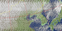 | NOAA18 22:00:44~22:16:30 進行方向(南から北) 最大昇角(84°) 方角(西) |