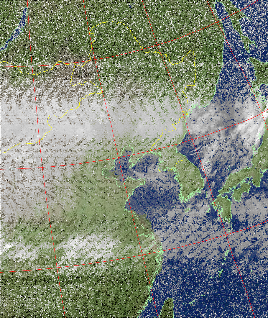 | NOAA19 07:49:13~08:04:10 進行方向(北から南) 最大昇角(30°) 方角(東) |