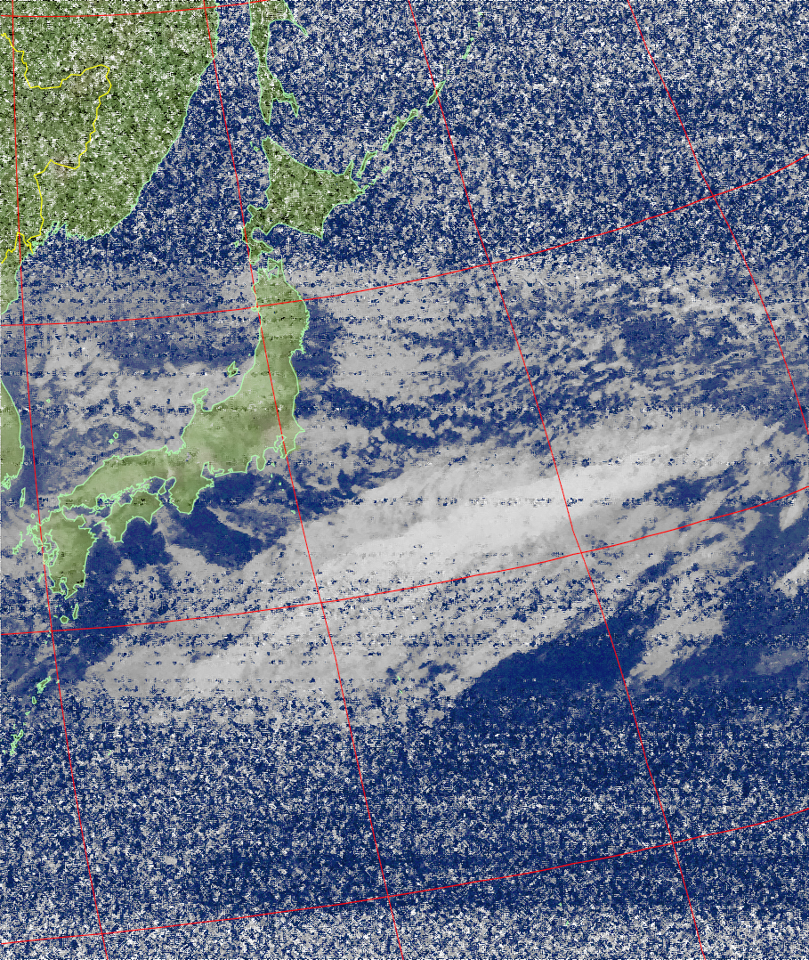 | NOAA18 21:24:44~21:40:04 進行方向(南から北) 最大昇角(44°) 方角(東) |