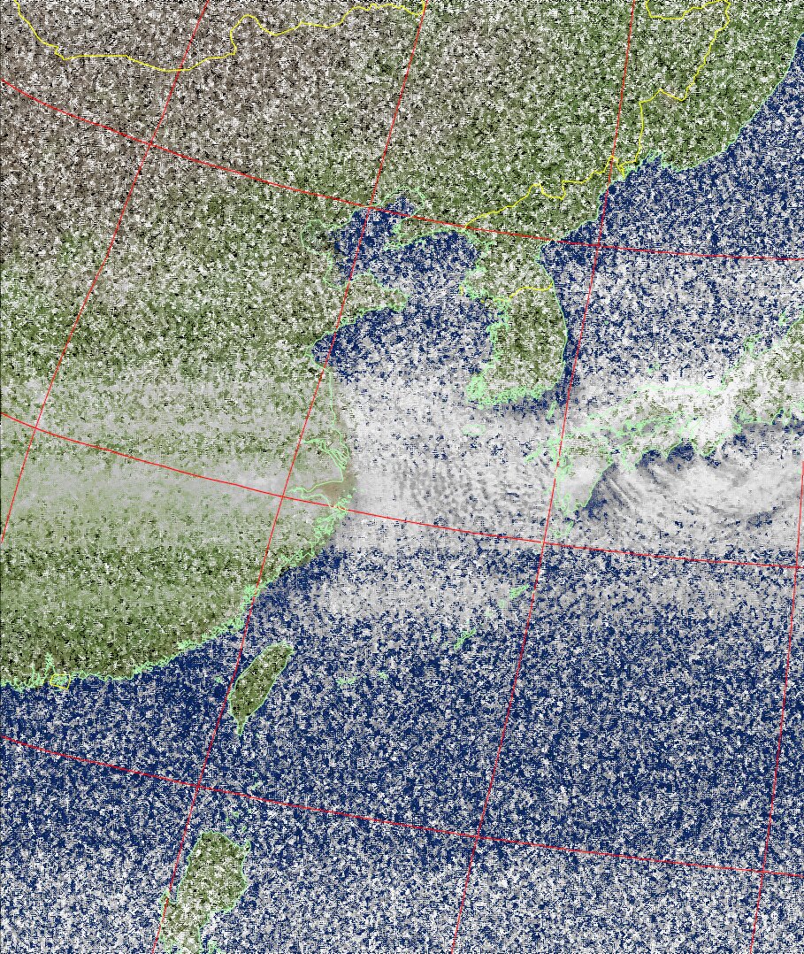 | NOAA15 07:43:47~07:59:02 進行方向(北から南) 最大昇角(74°) 方角(東) |