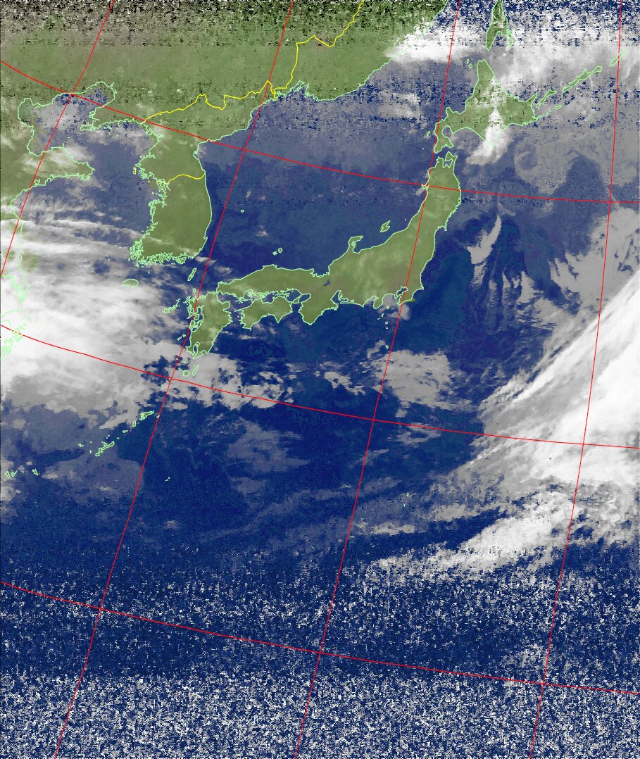 NOAA19 19:47:37~20:03:17 進行方向(南から北) 最大昇角(70°) 方角(東)