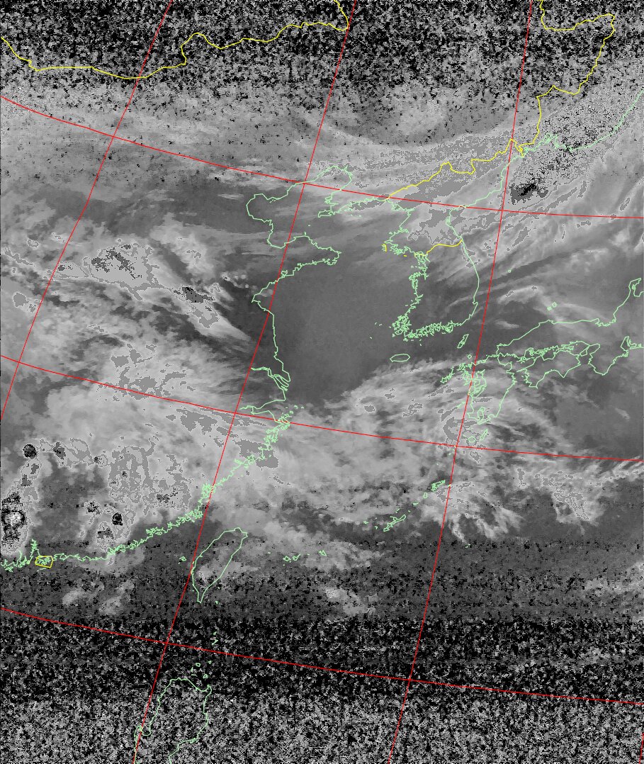 | NOAA19 09:24:40~09:40:08 進行方向(北から南) 最大昇角(48°) 方角(西) |