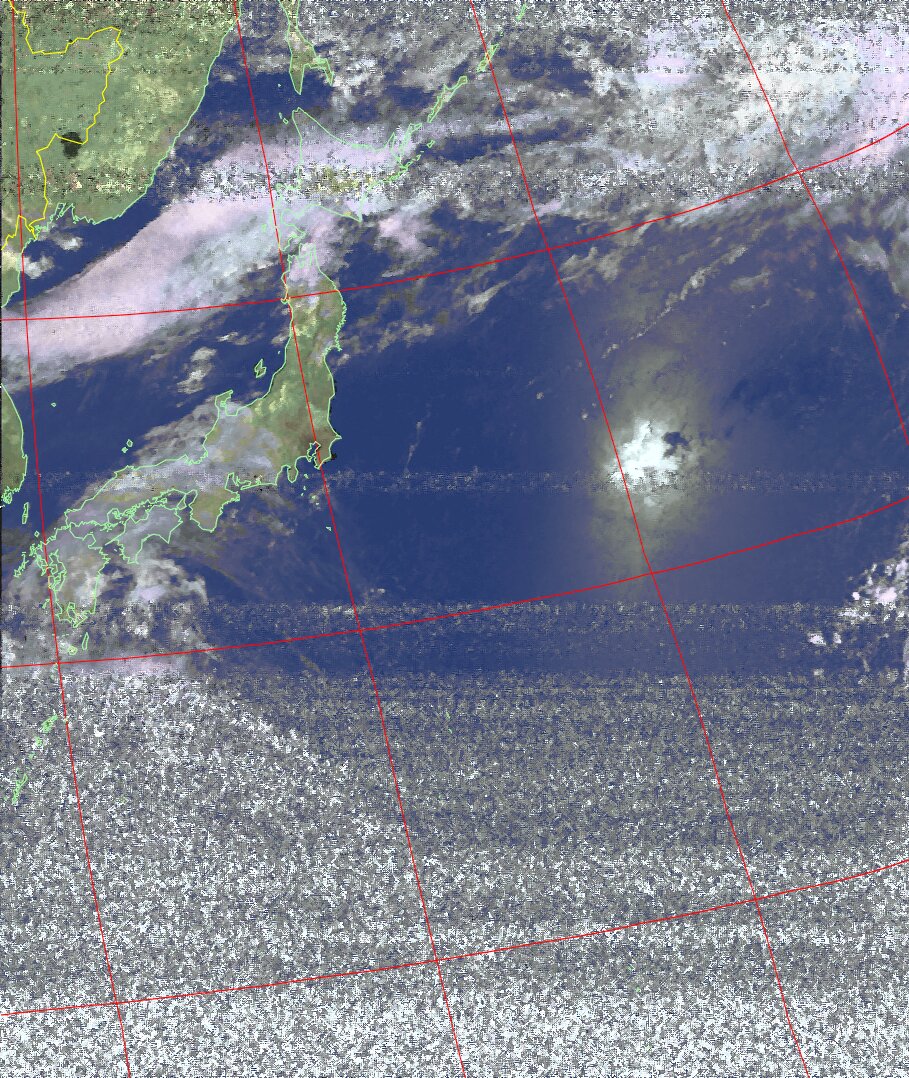 | NOAA15 07:52:10~08:07:18 進行方向(北から南) 最大昇角(86°) 方角(西) |
