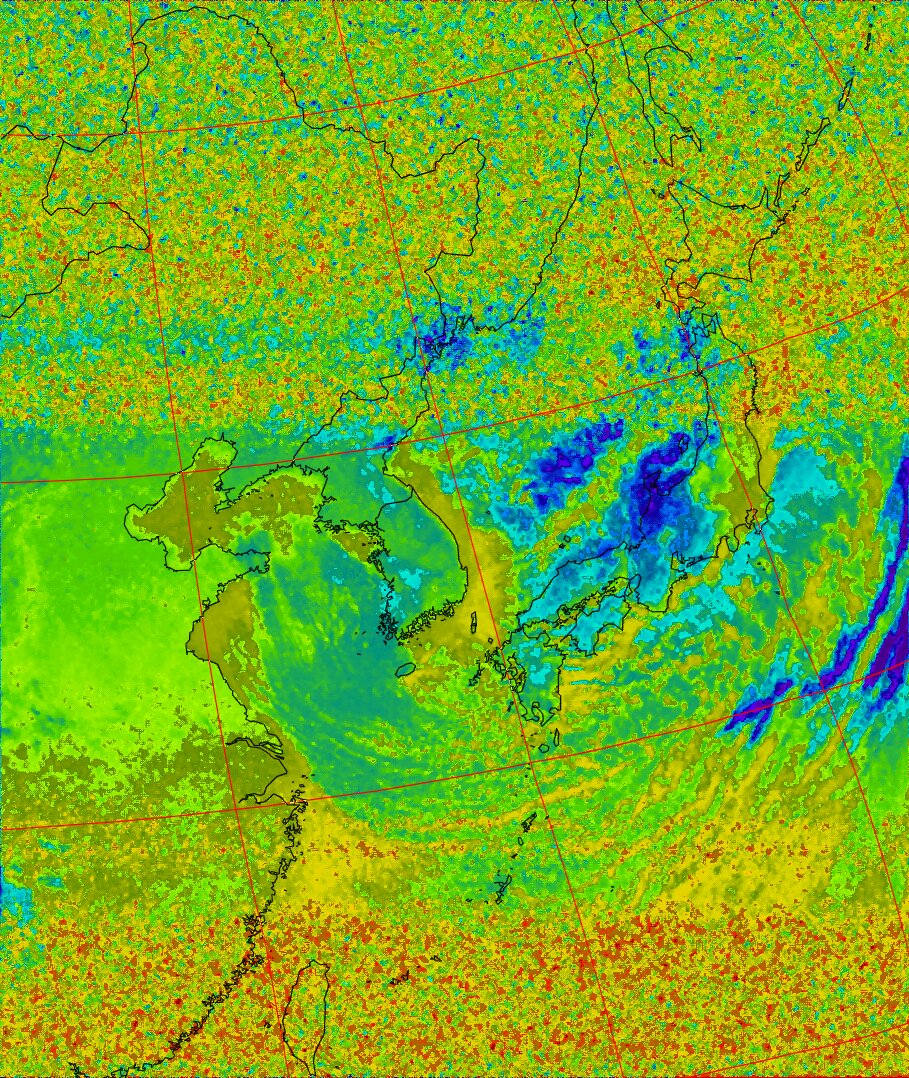 | NOAA18 22:50:10~23:05:20 進行方向(南から北) 最大昇角(36°) 方角(西) |