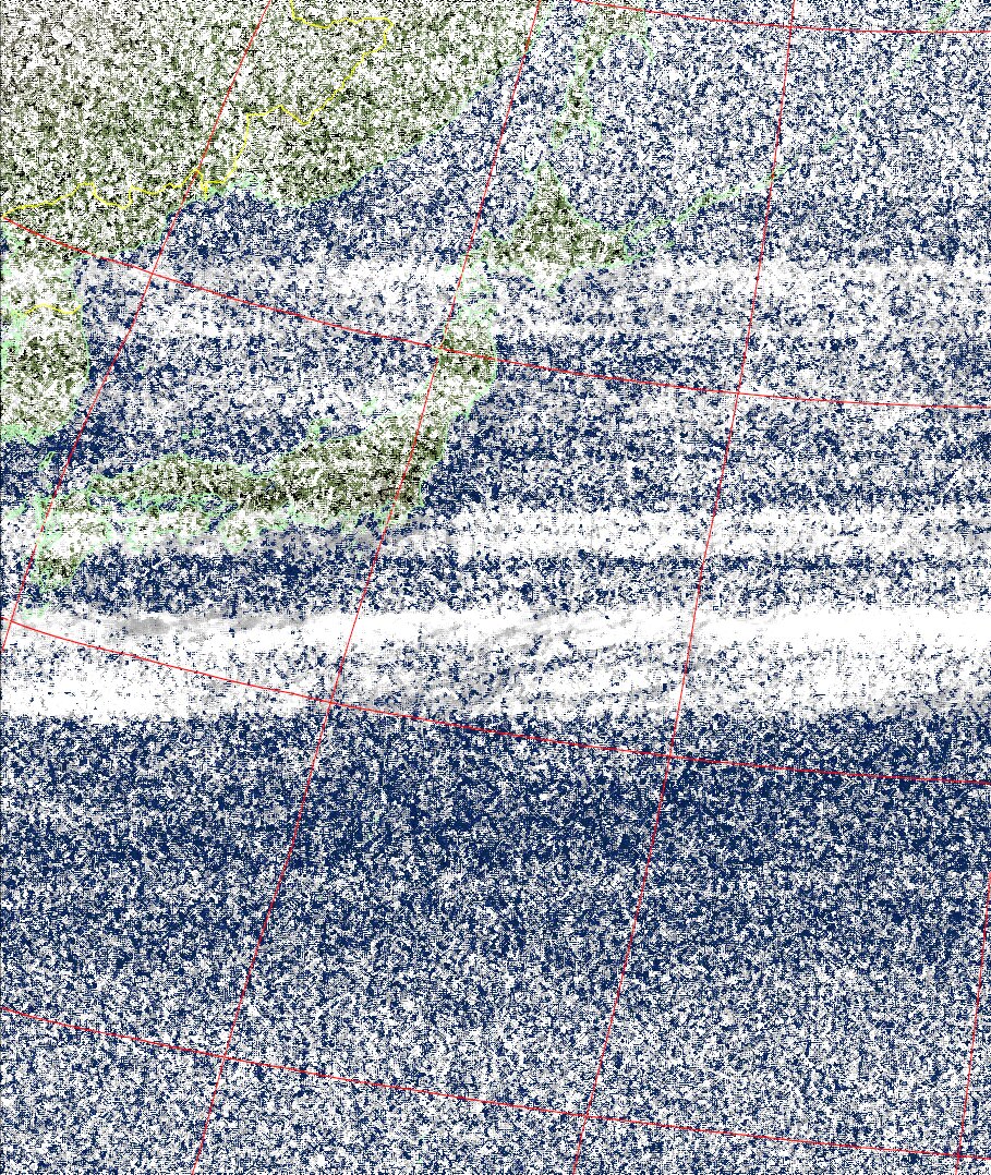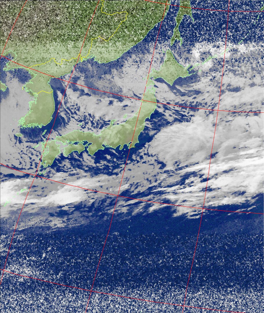 | NOAA18 10:27:50~10:43:20 進行方向(北から南) 最大昇角(46°) 方角(東) |