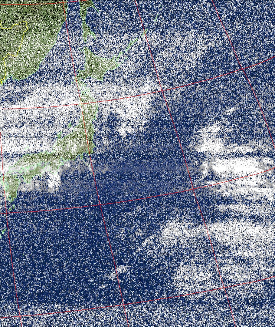 | NOAA18 11:09:13~11:24:40 進行方向(北から南) 最大昇角(85°) 方角(西) |