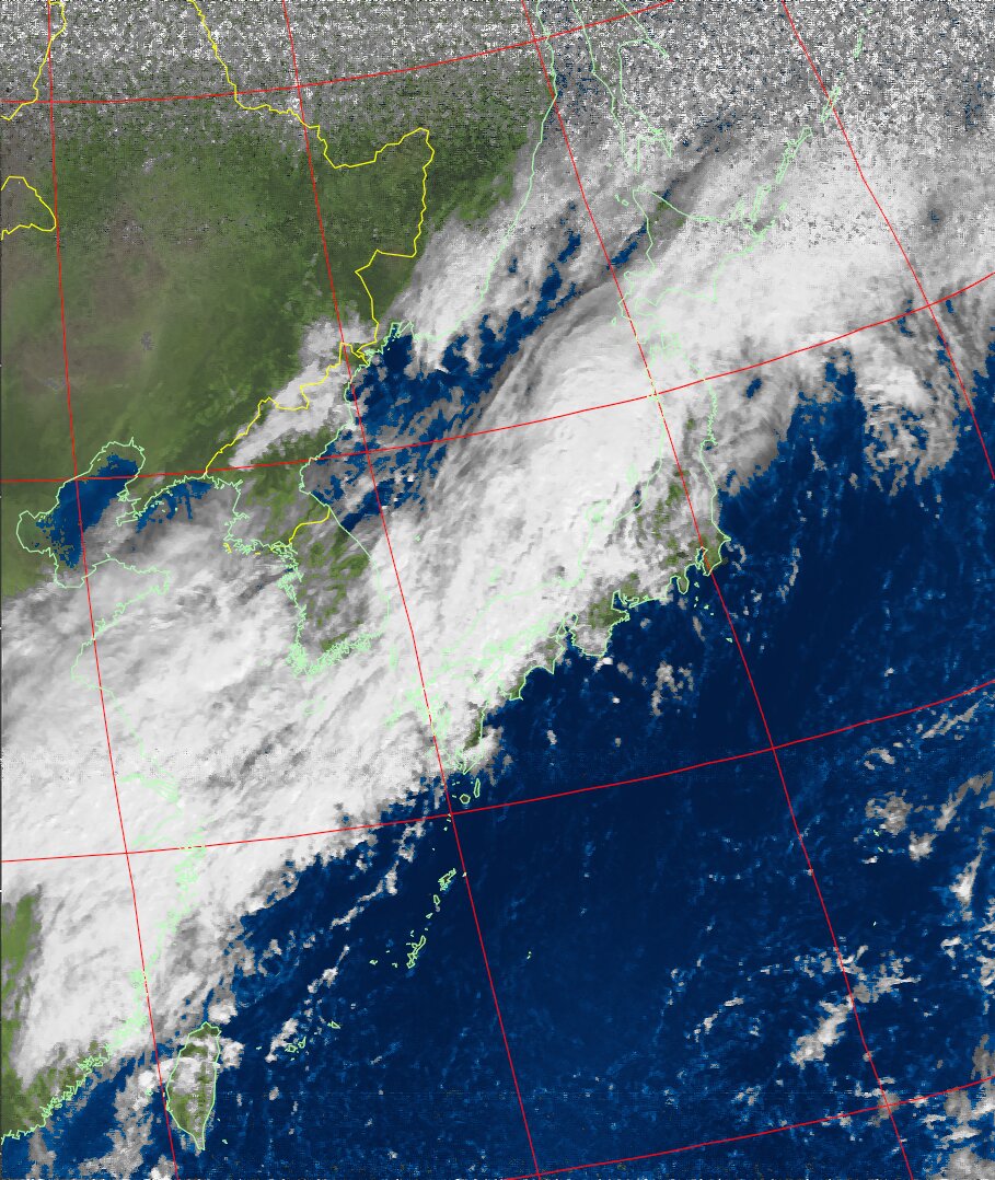 | NOAA15 06:54:38~07:09:06 進行方向(北から南) 最大昇角(30°) 方角(東) |