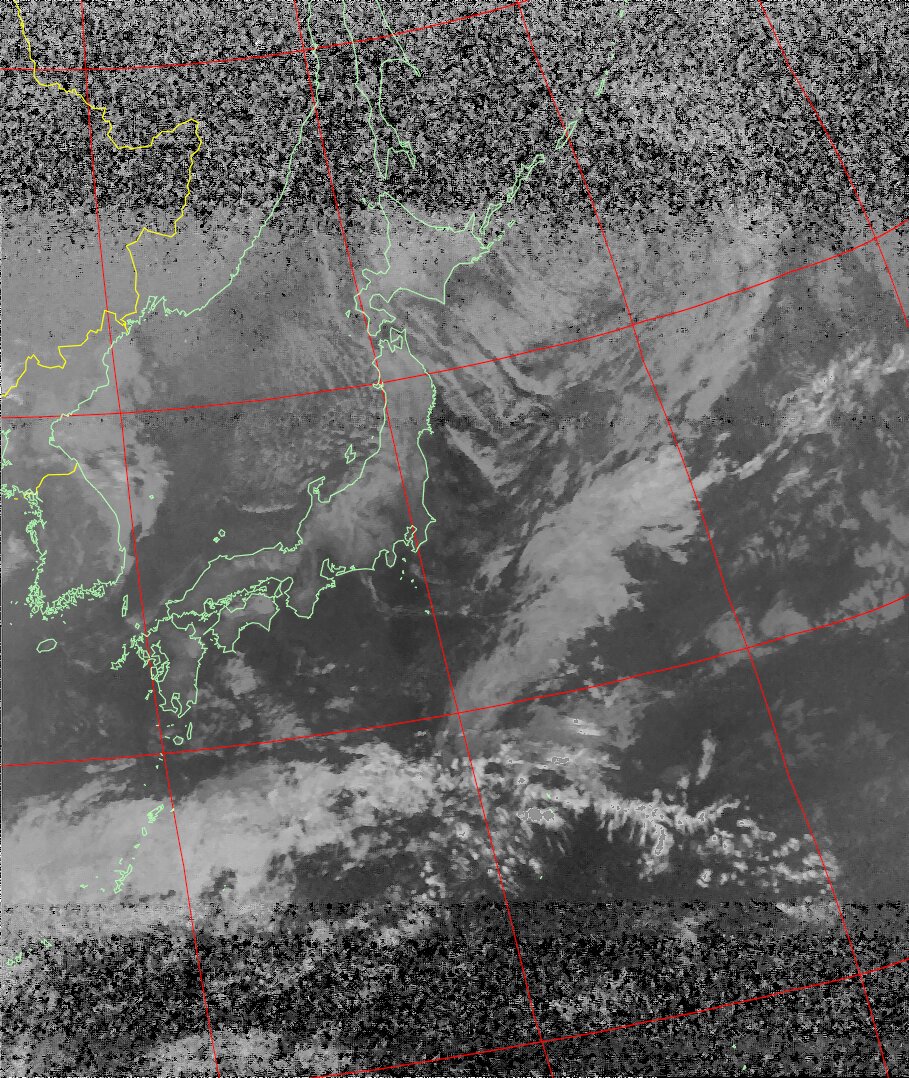 | NOAA18 23:05:39~23:20:29 進行方向(南から北) 最大昇角(31°) 方角(西) |