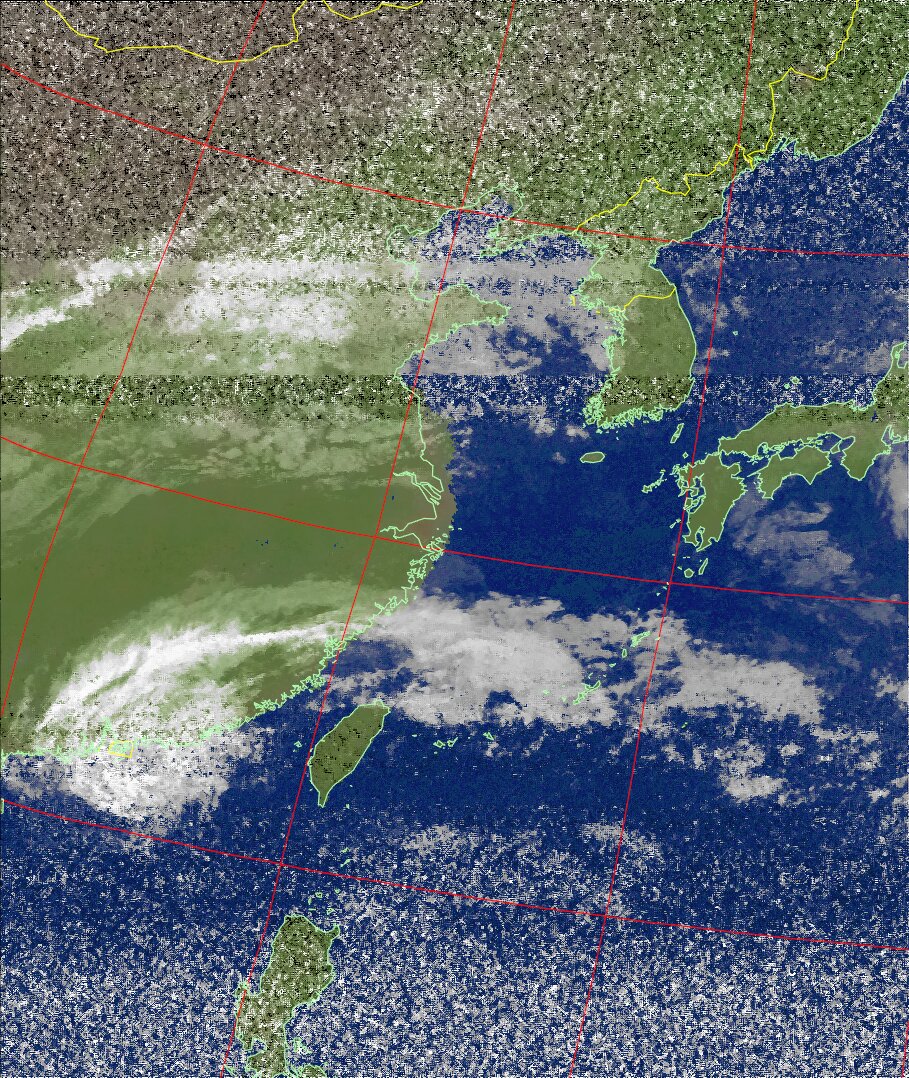 | NOAA15 07:34:01~07:49:13 進行方向(北から南) 最大昇角(79°) 方角(東) |