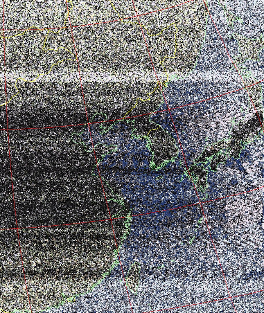 | NOAA19 21:11:01~21:26:50 進行方向(南から北) 最大昇角(80°) 方角(西) |
