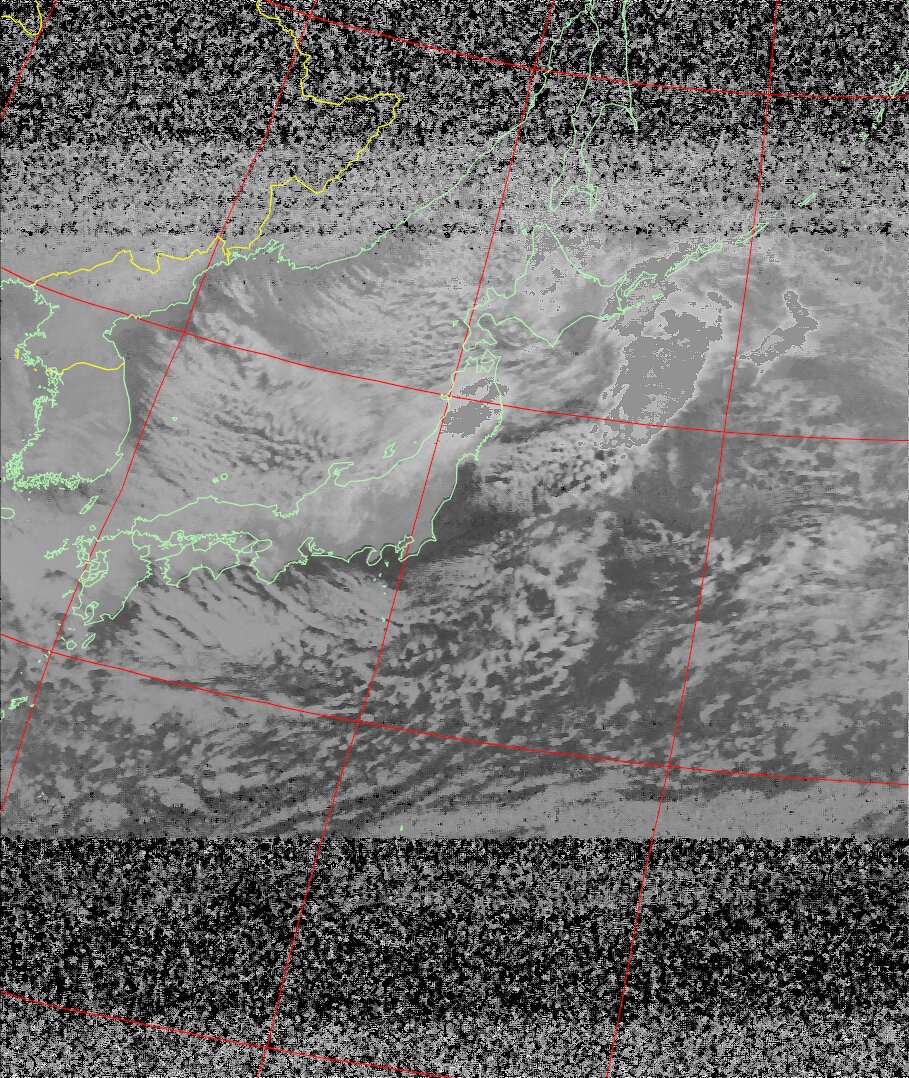 | NOAA19 20:47:49~21:03:23 進行方向(南から北) 最大昇角(58°) 方角(東) |