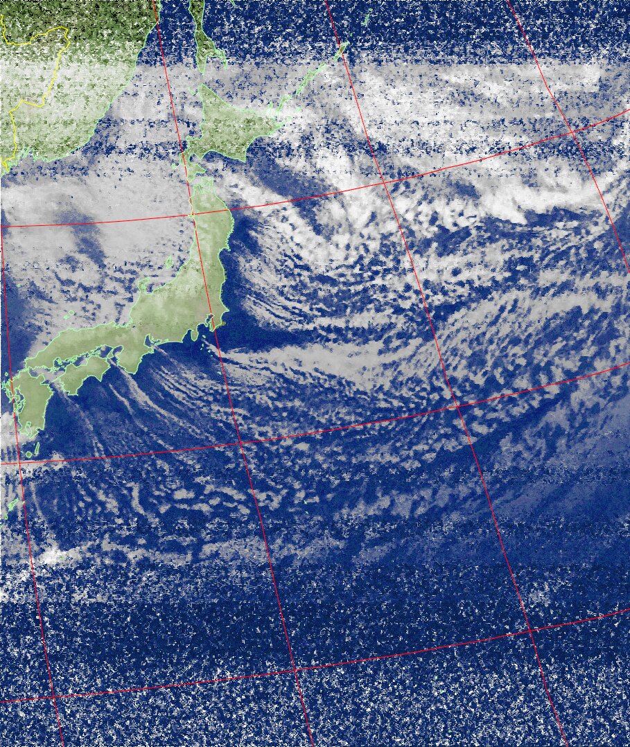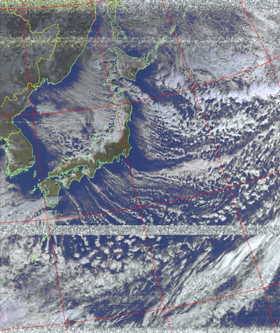 | NOAA18 11:37:11~11:52:31 進行方向(北から南) 最大昇角(47°) 方角(西) |