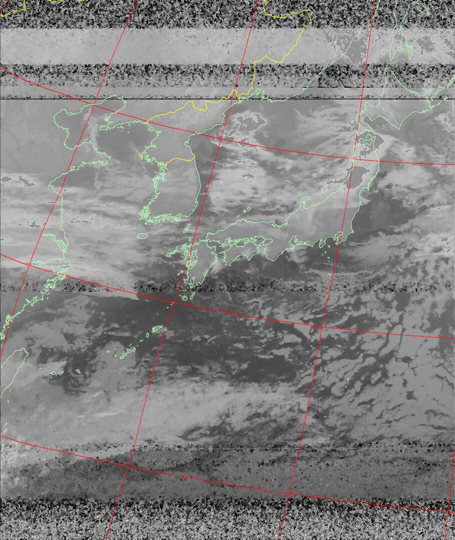 | NOAA18 10:17:54~10:32:33 進行方向(北から南) 最大昇角(28°) 方角(東) |