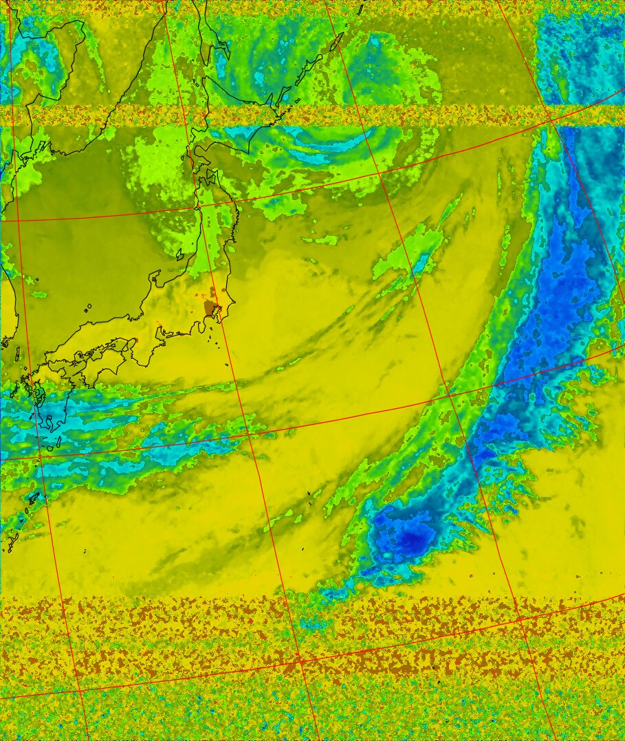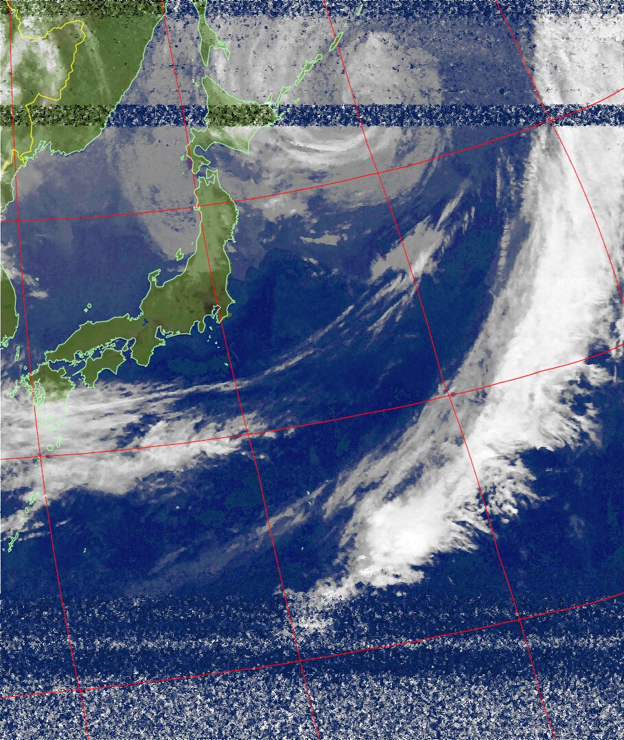 | NOAA18 11:06:28~11:22:05 進行方向(北から南) 最大昇角(85°) 方角(東) |